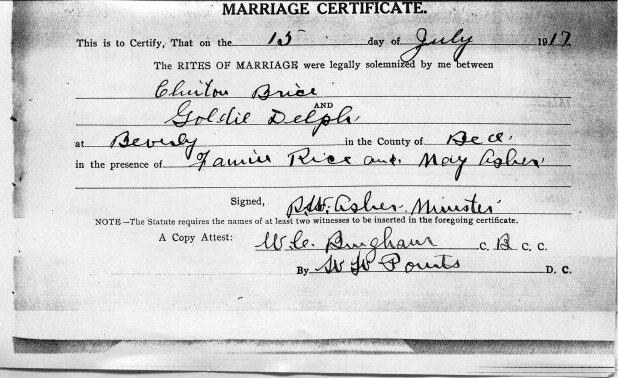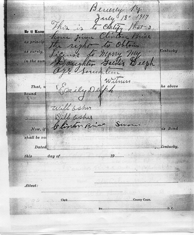 NOTE FROM PARENT OF BRIDE, MARRIAGE BOND AND MARRIAGE CERTIFICATE