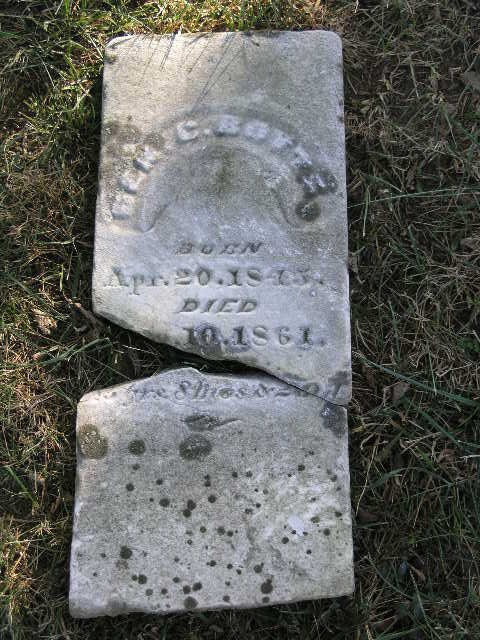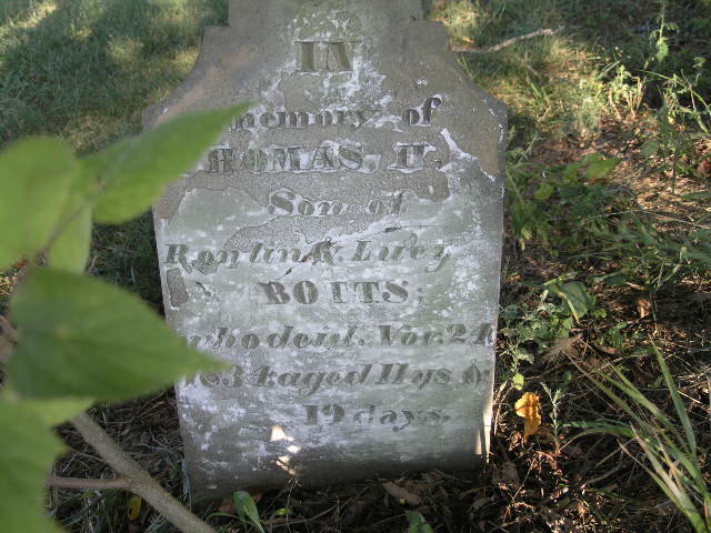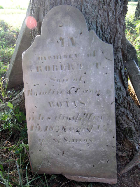 Footstone - initials R. T. L. or R. T. B. (could be Robert T. Botts) |