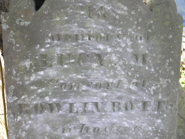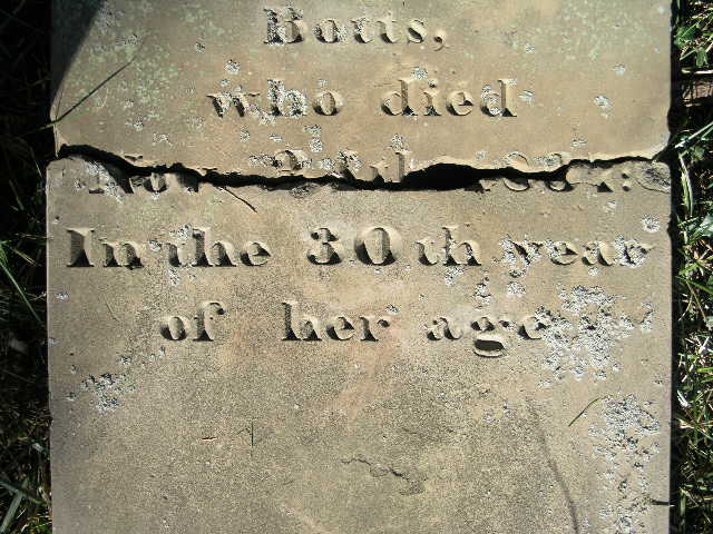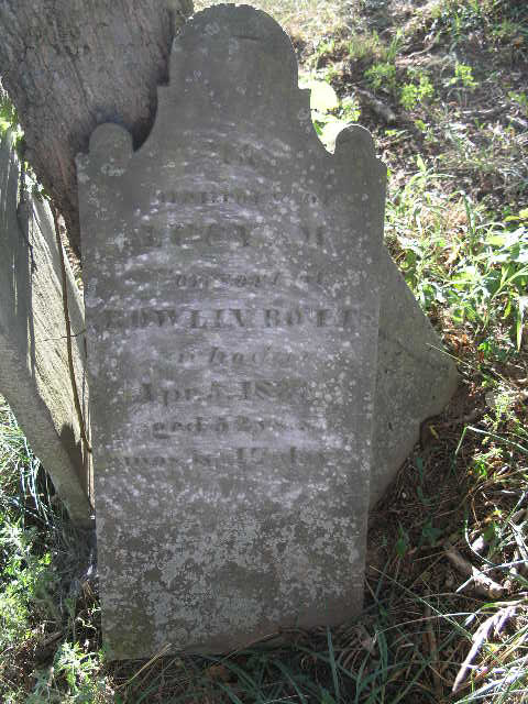 Base of stone - no markings. This could be the base of Rowland Botts' headstone or it could possibly be the base of Sarah G. Botts, his daughter. Sarah died July 28, 1843, aged 29 years, 11 months, 12 days. This was transcribed in Dec 1962 by Mrs. C. Davis Gaines, also by Shirley Biegel, and Anne Fitzgerald (1993) and is listed in the Boone County, Kentucky, Cemeteries by the Fitzgeralds. |