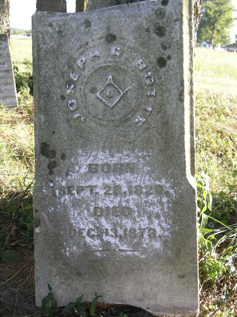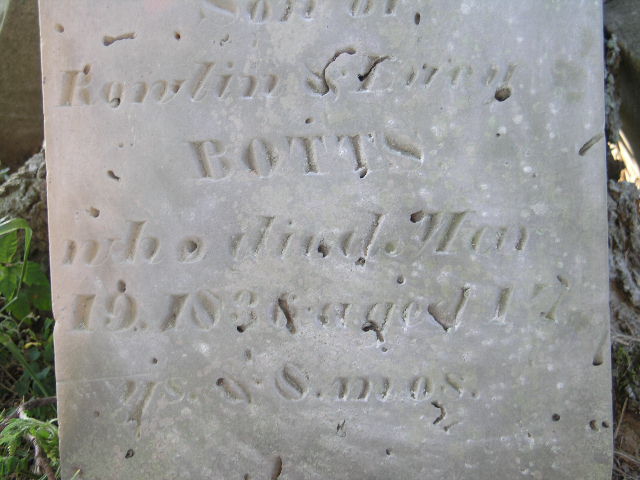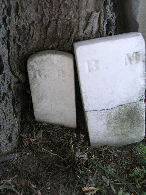 Footstone - initials R. B (Rowland Botts) and B. M. (Benjamin Mitchell) |