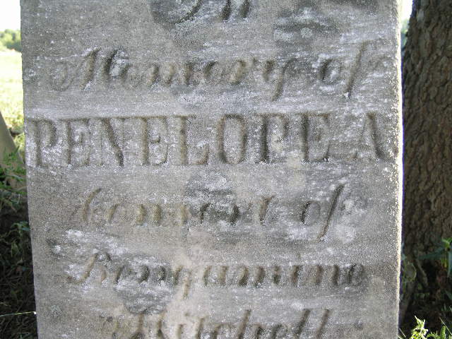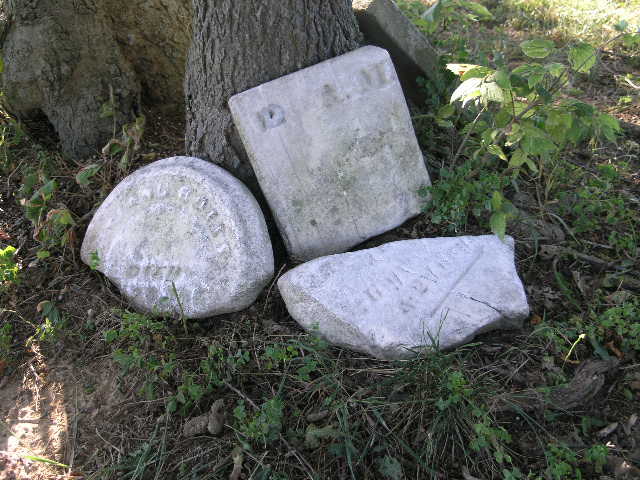 Mr. Smith came out and greeted us the day we visited the cemetery and told us that most of the headstones were buried at this site and he dug them up and placed them against the trees. They are mostly in great shape, some are broken and some are barely legible. |
