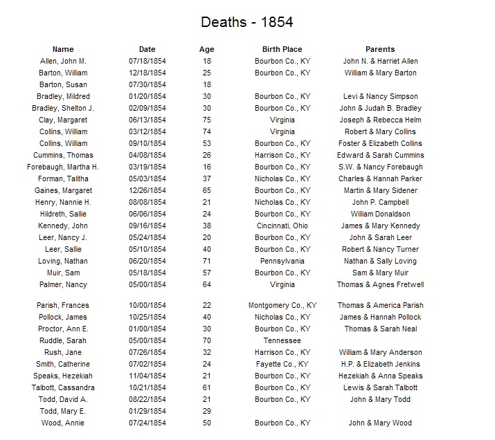 Not Named 11/03/1854 M Dead Bourbon Sidney Clay Melissa B Bourbon