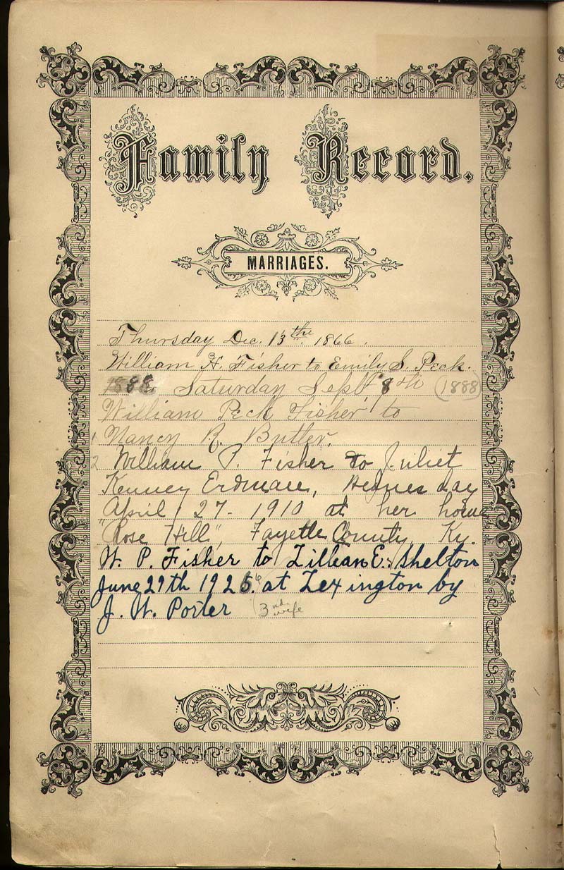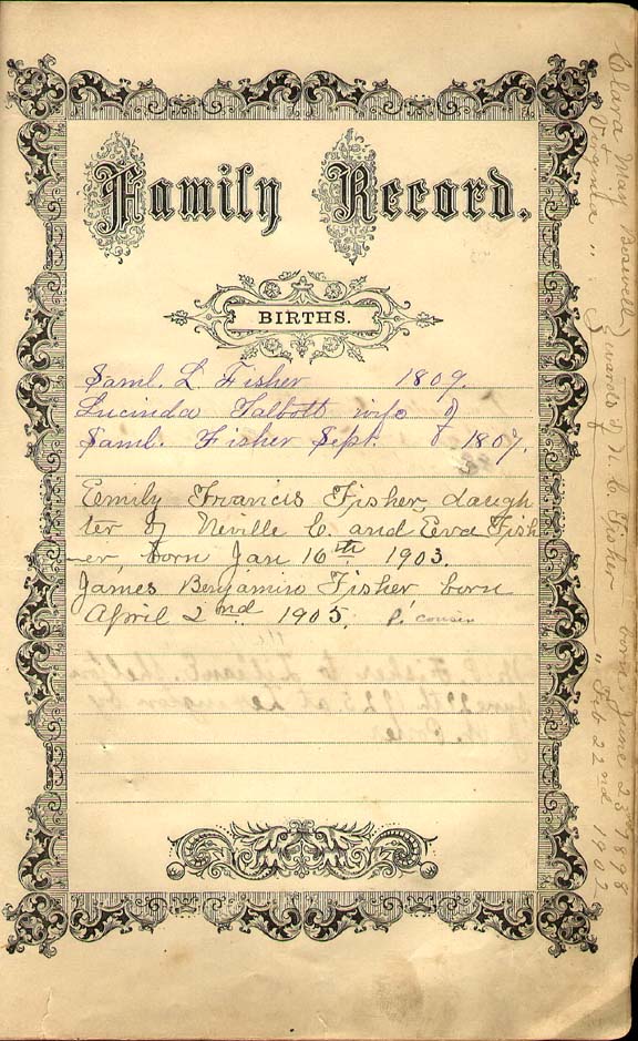 Fisher Bible Inside Cover