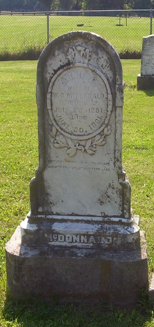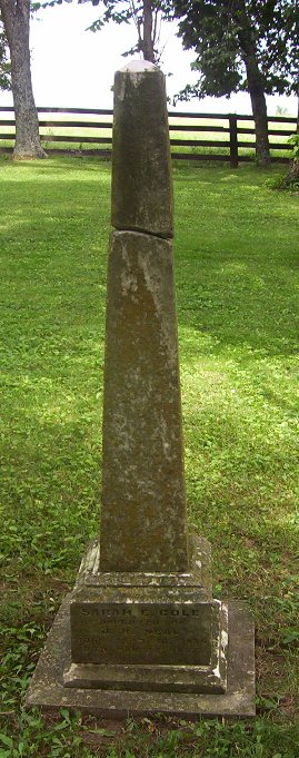 In memory of Sally An Houston wife of J. H. Houston and daughter of E. W. and Matilda Horton, born Jan. 1, 1821, died Nov. 21, 1850, being a member of the Christian Church, she died as she lived, a Christian.