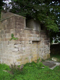There is a 40� x 40� plot with a stone wall around it with several Martins & Munsons