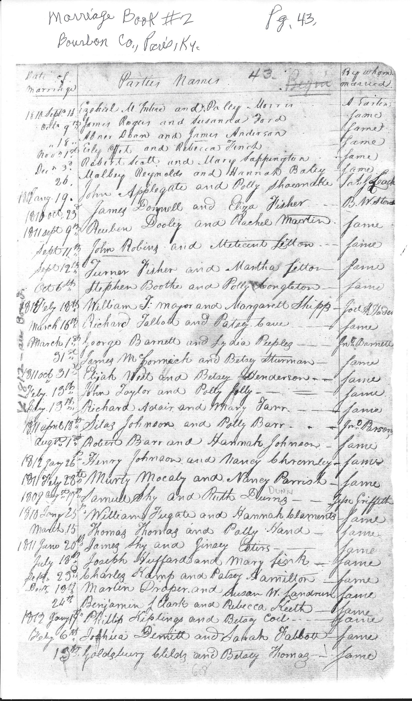31 Oct 1812 West. Elijah. Henderson, Betsey. Jno. Barnett 43