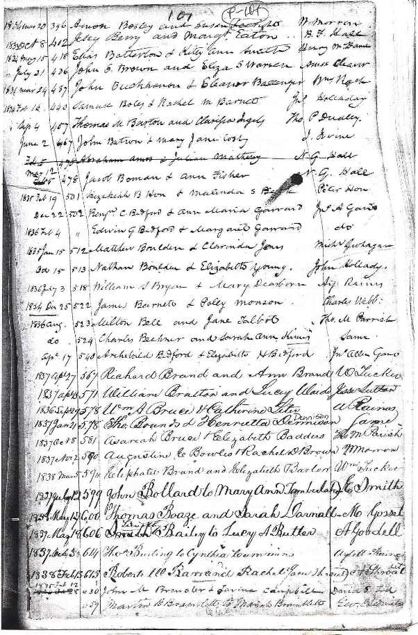 13 Feb 1838 Bamand, Robert W. Throud, Rachel Jane C. Te. Throal 101