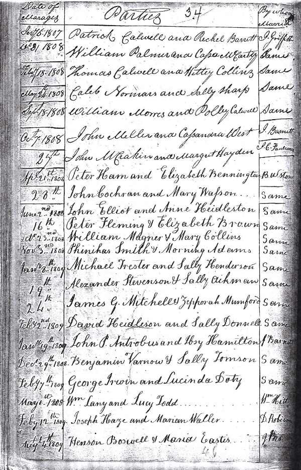 26 Nov 1807 Wilson, Jerrimiah Hull, Jane R. Thomas 33