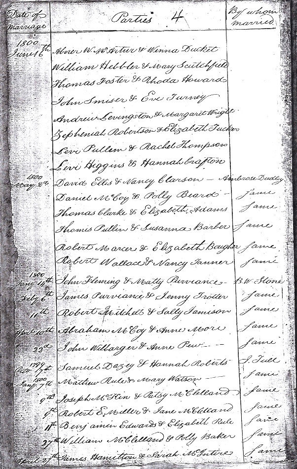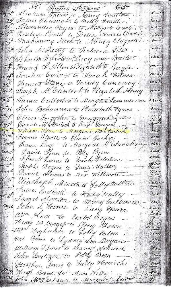 15 ___ 1799 Wright, Hugh Patterson, Maryann 10