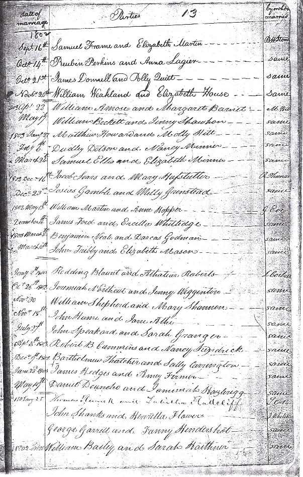 26 Feb 1803 (?) Bailey, William Haithner, Sarah J. Whitaker 13