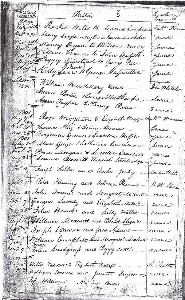 __ ___ 1801 Williams, Jesse Davis, Nancy A. Eastin 8