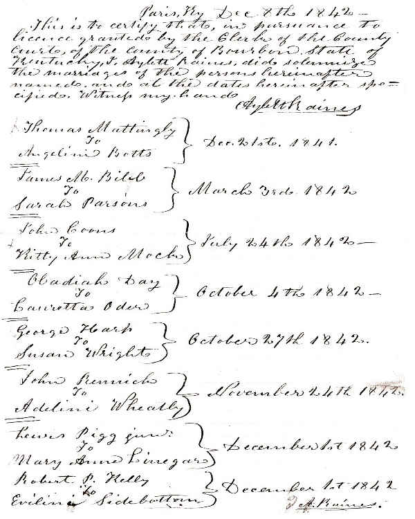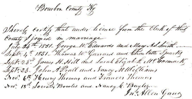 MISCELLANEOUS MARRIAGES IN BOURBON COUNTY COURT RECORDS