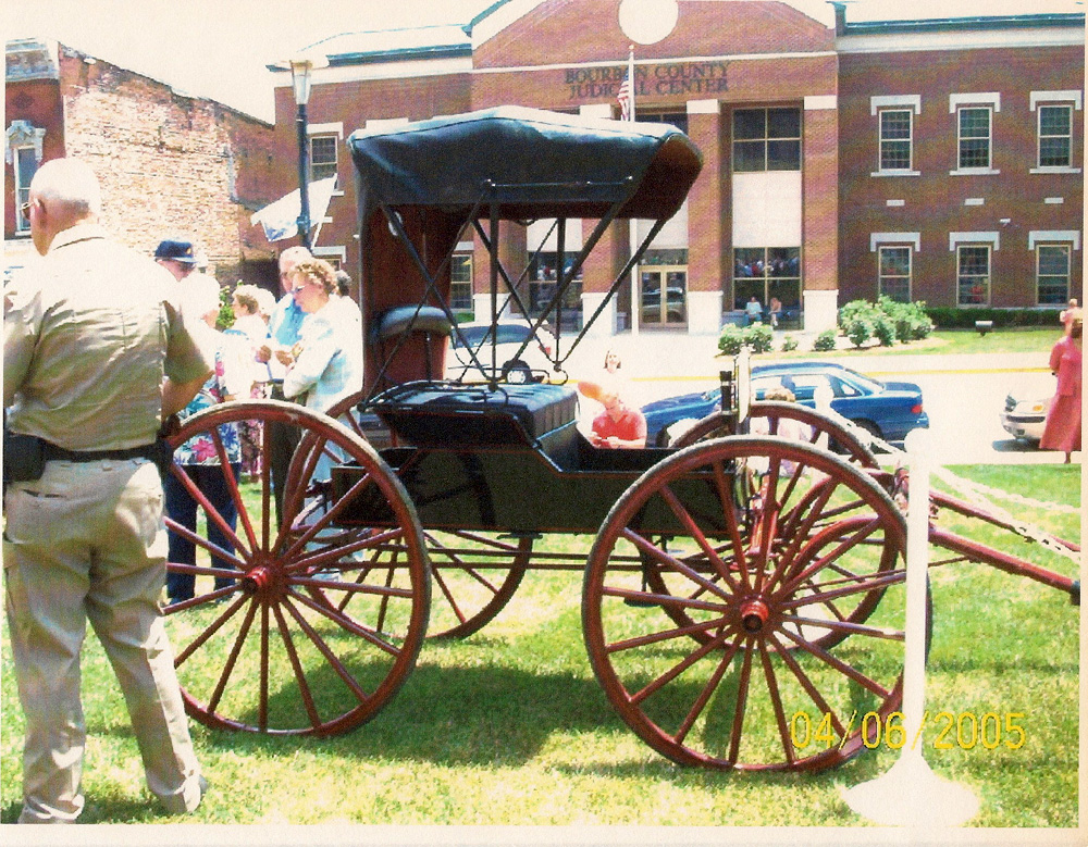 April 2005 Courthouse celebration also provided an opportunity for politicians to speak at the Courthouse steps, folks to take photos, and to celebrate the past with a display of old-time transportation on the Courthouse lawn. Cake was served in the Courthouse. The buggies are ca. 1900-1905.