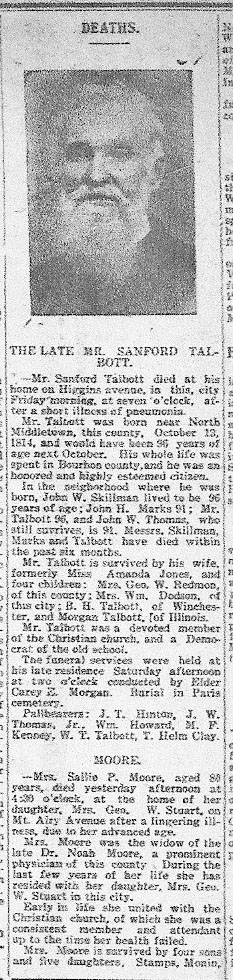 The Bourbon News, Paris, Kentucky, March 1, 1910, page 4 "The Late Mr. Sanford Talbott"