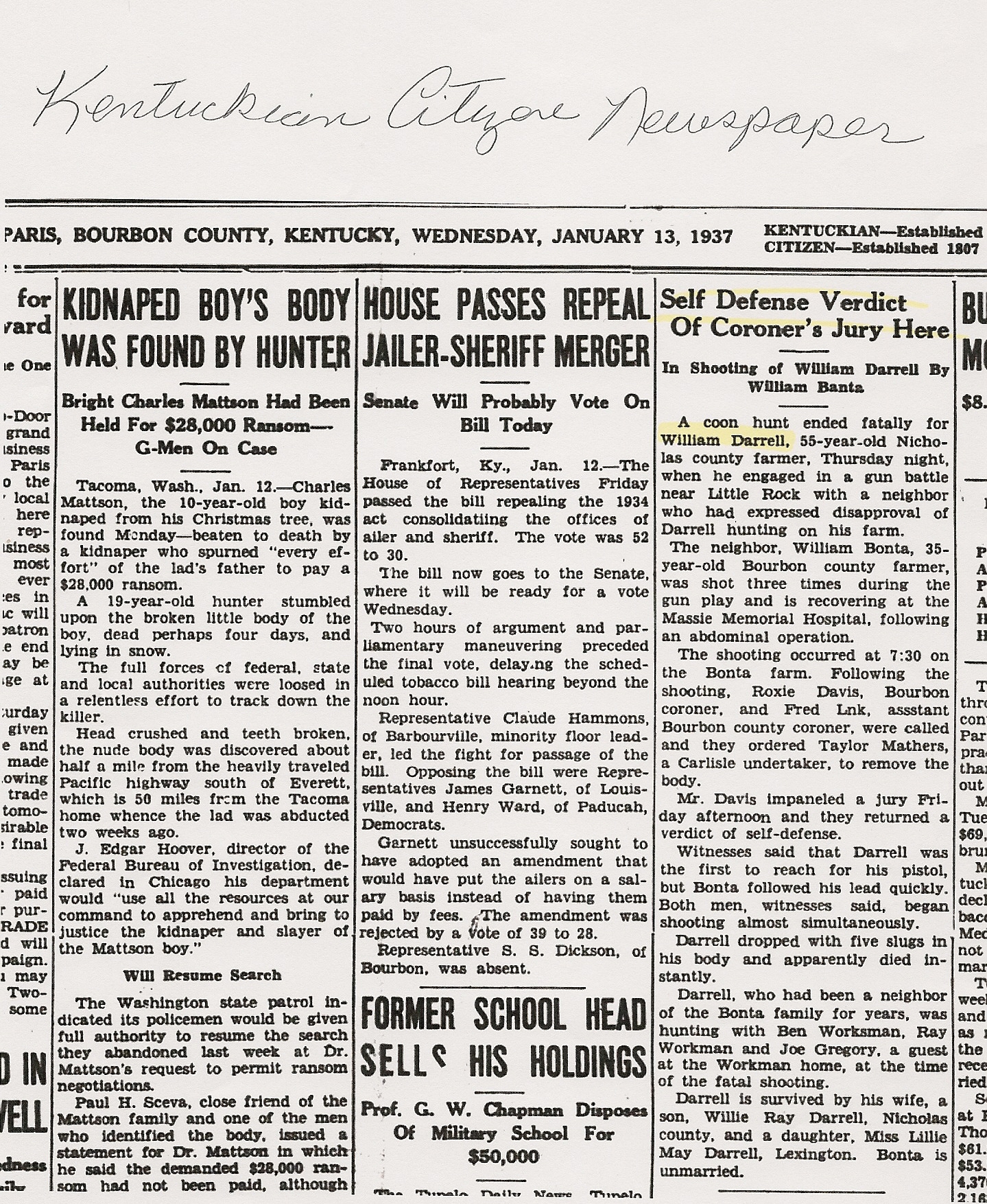KENTUCKIAN CITIZEN, Wednesday, 23 February 1939