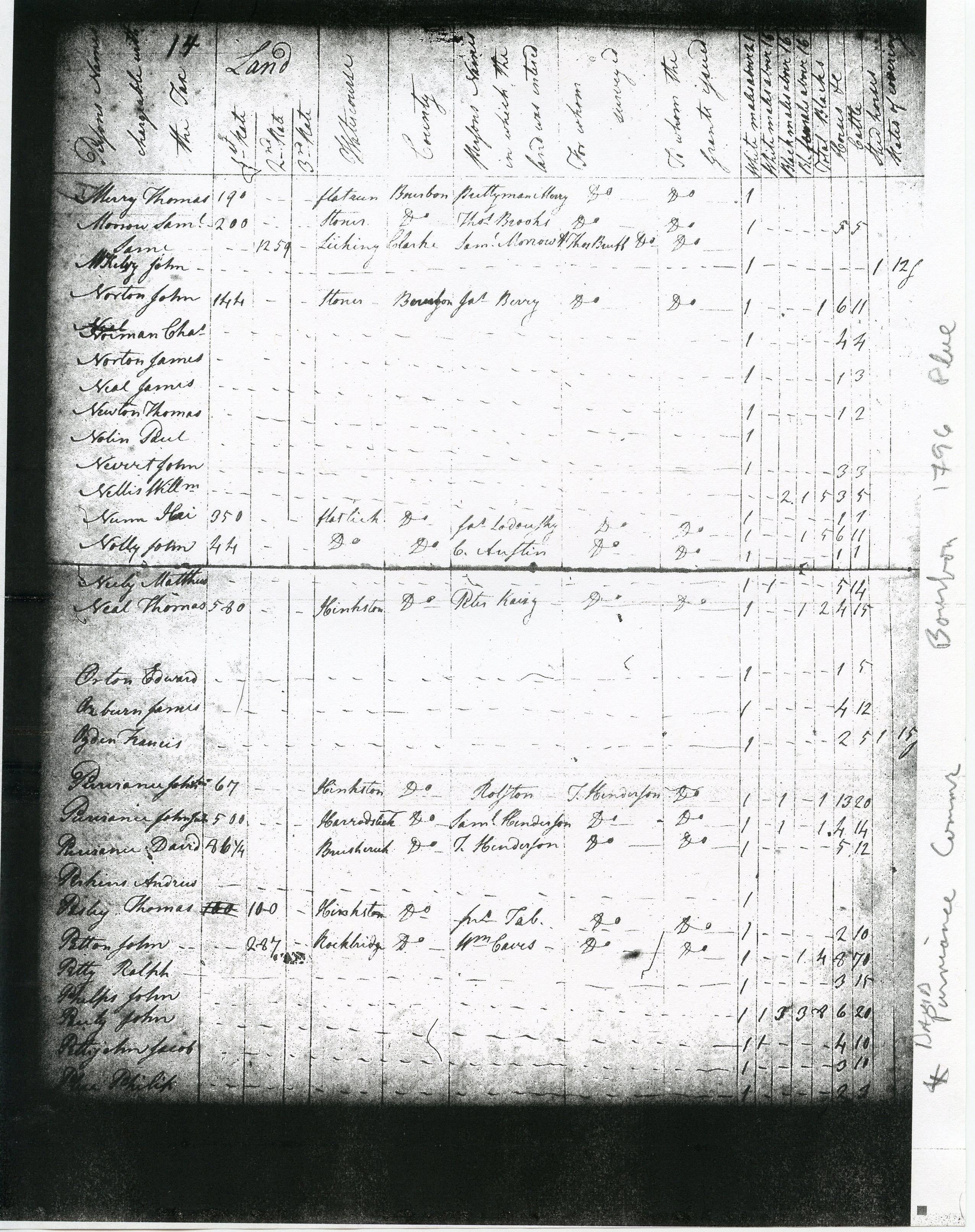 1793: Neeley Roberts, October 17 1793, 1 male>21, 1 horse, 5 cattle; William Roberts, October 29 1793, 1 male>21, 1 horse, 6 cattle.