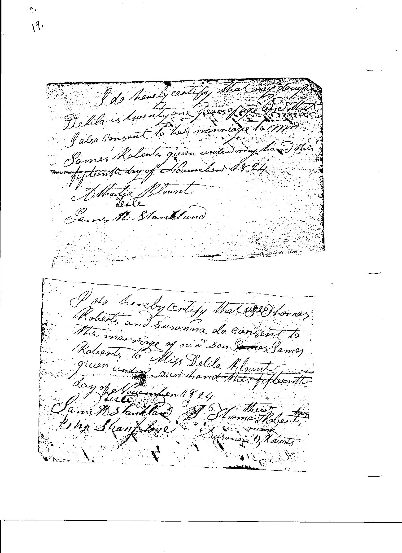 James Roberts to Miss Deliah Blount 1824