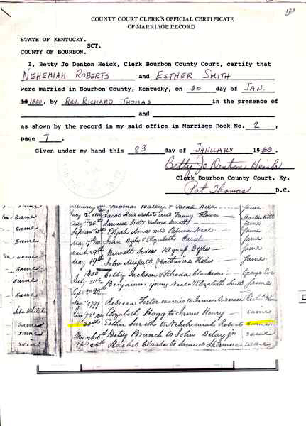 Roberts Marriages in Bourbon County