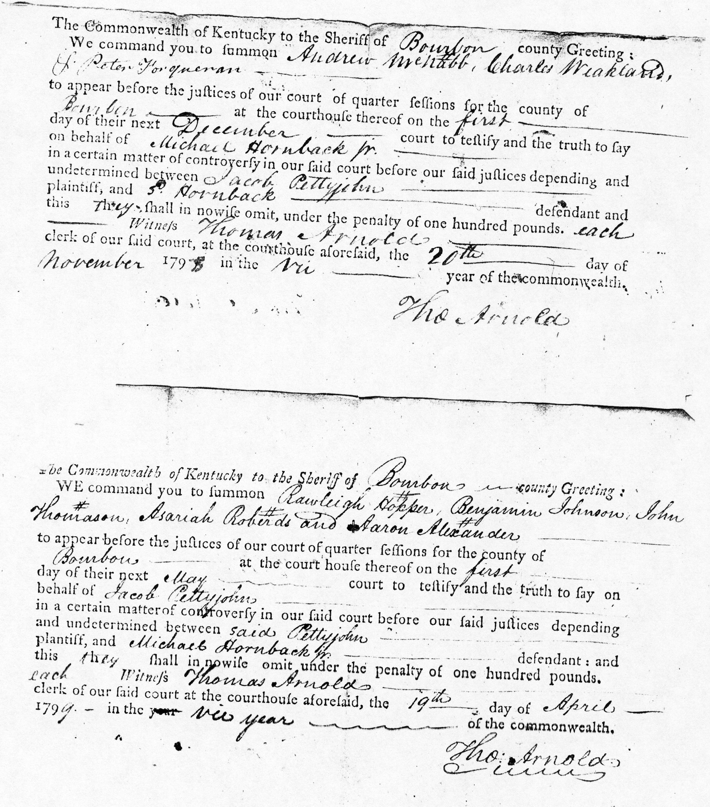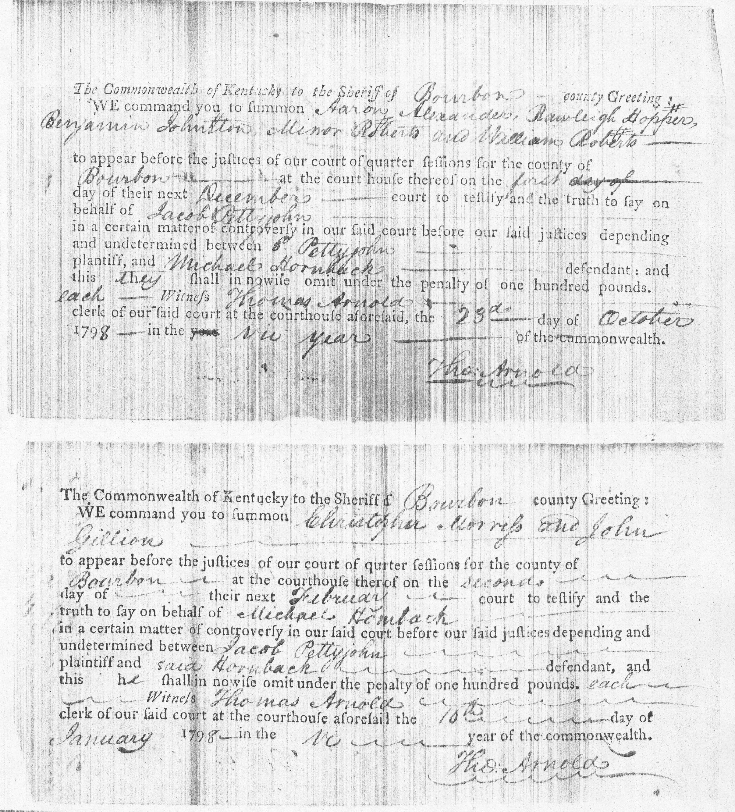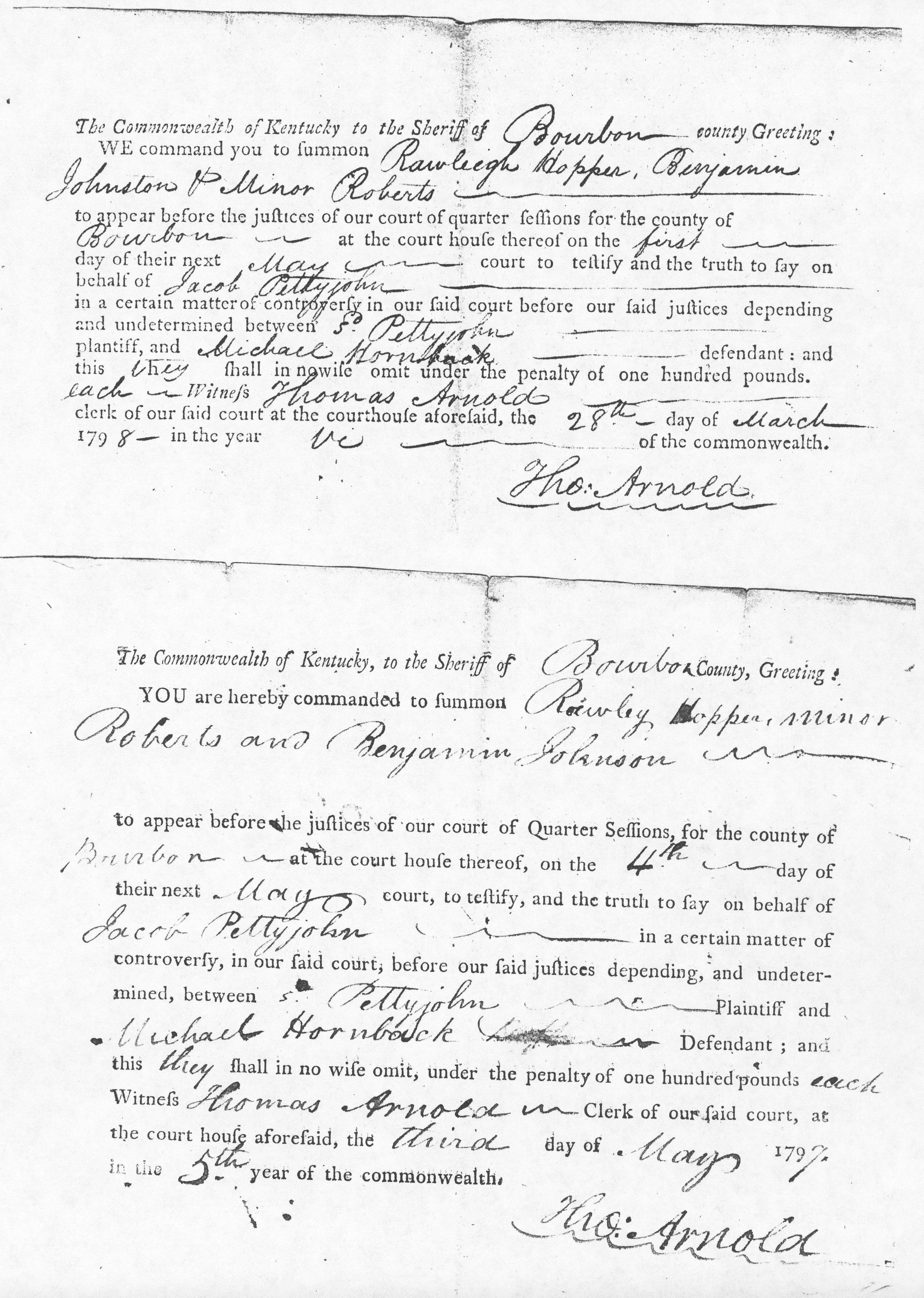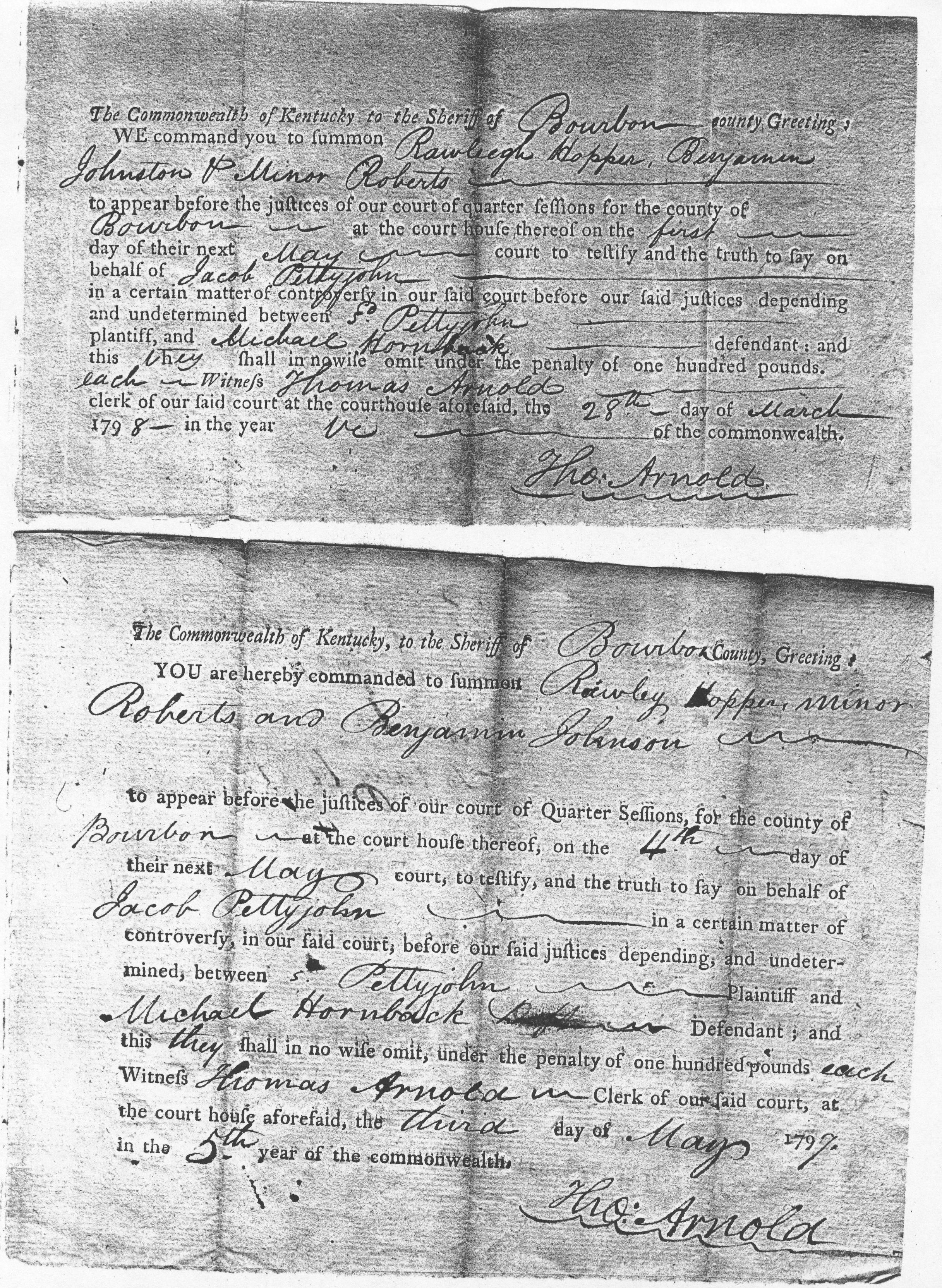 Pettyjohn Hornback Case Bourbon Co. (loose case papers from frankfort, KY.)