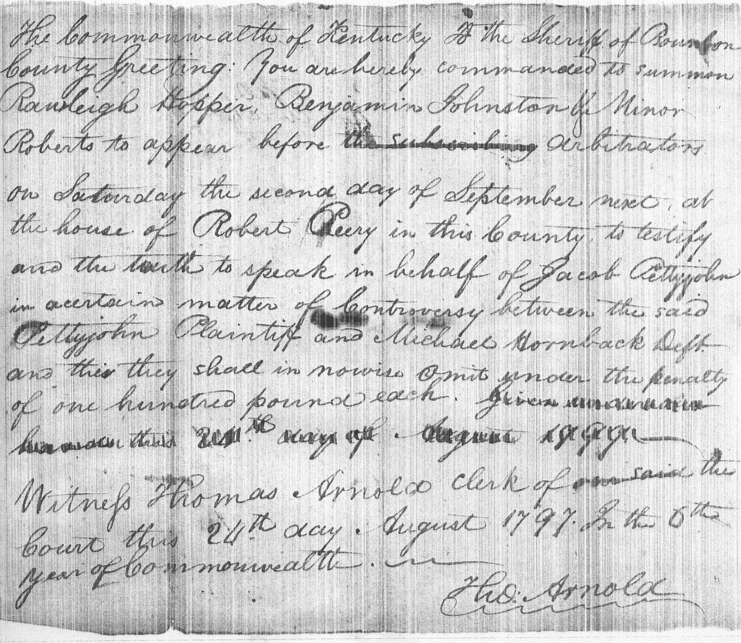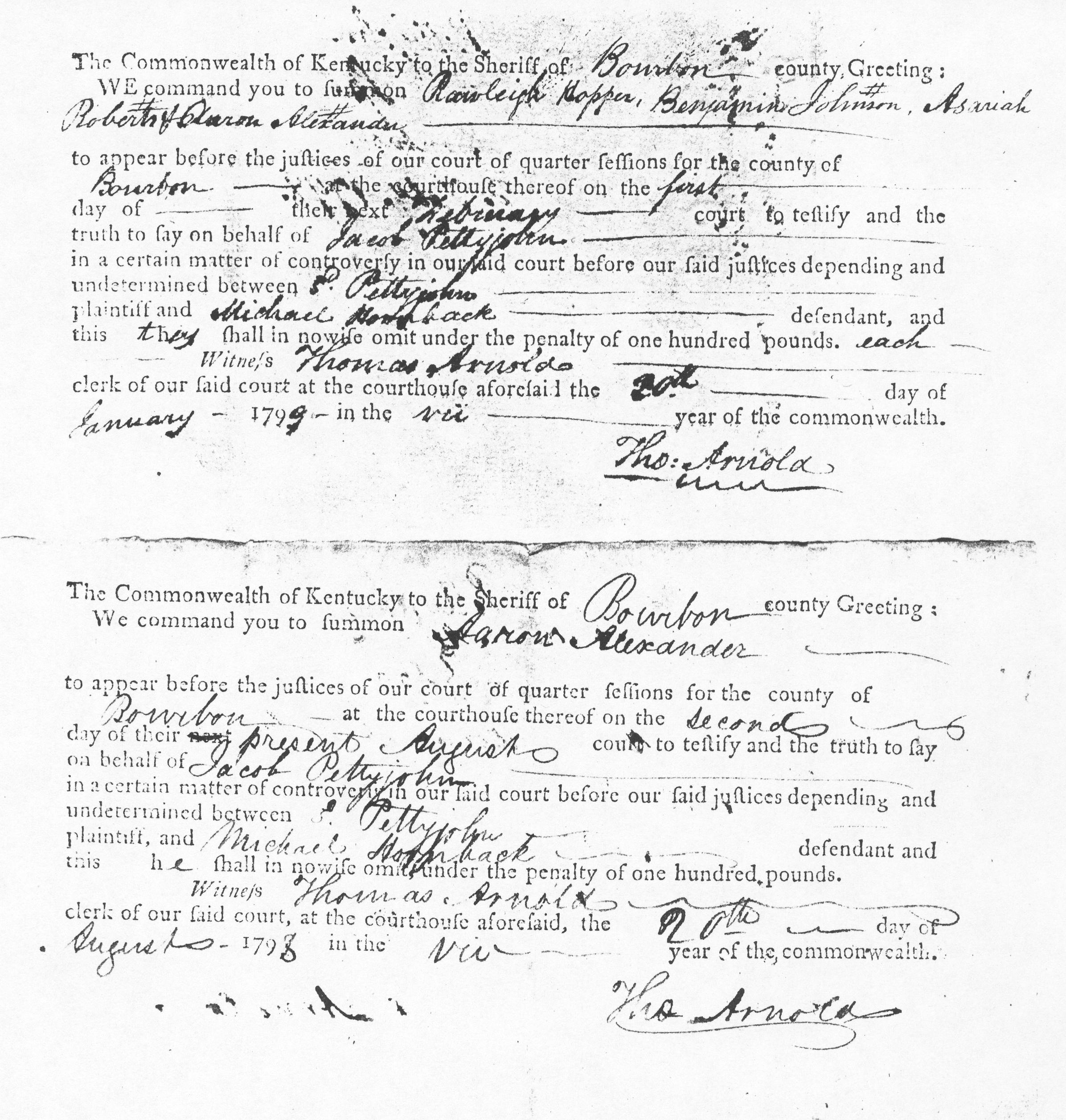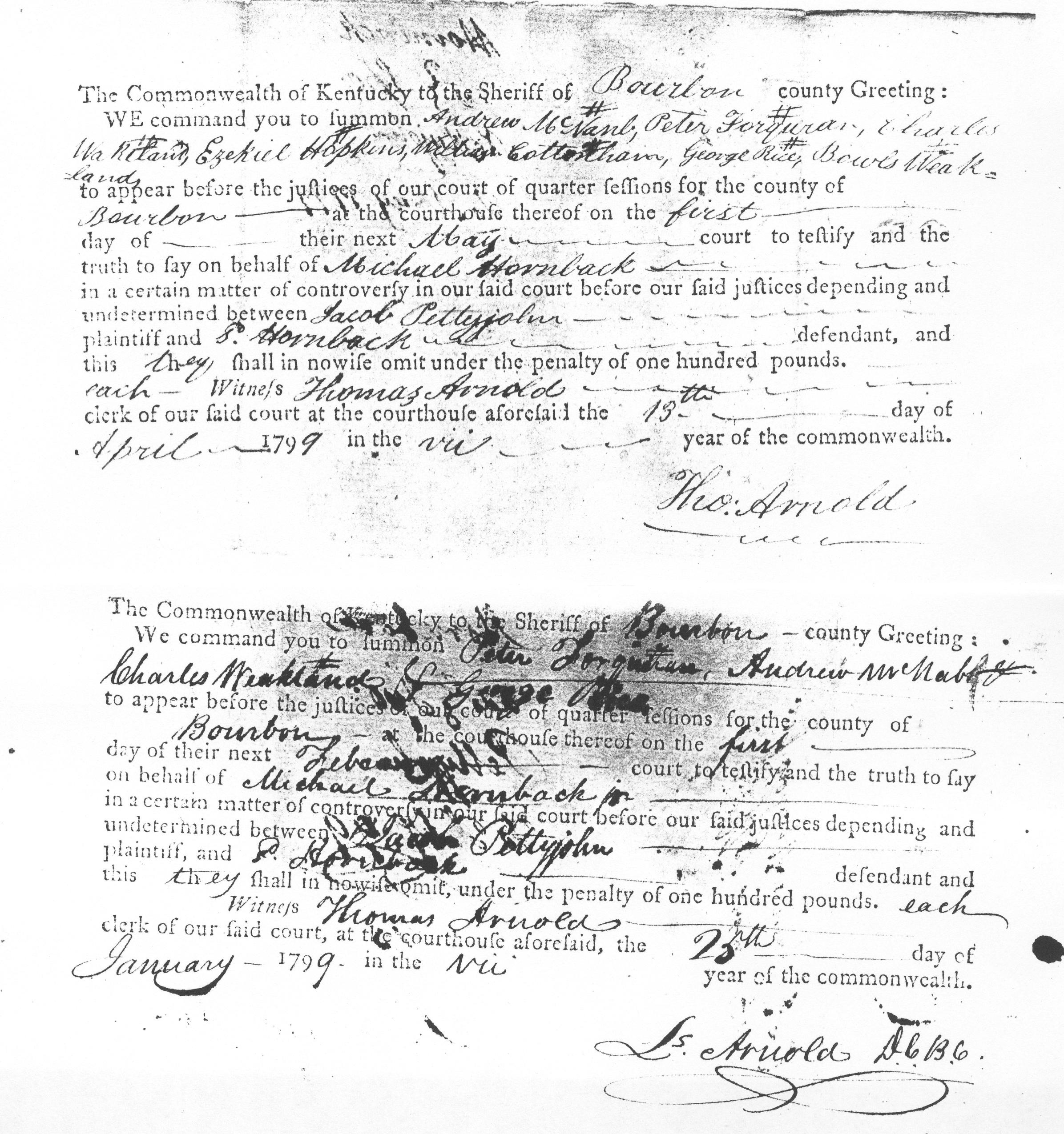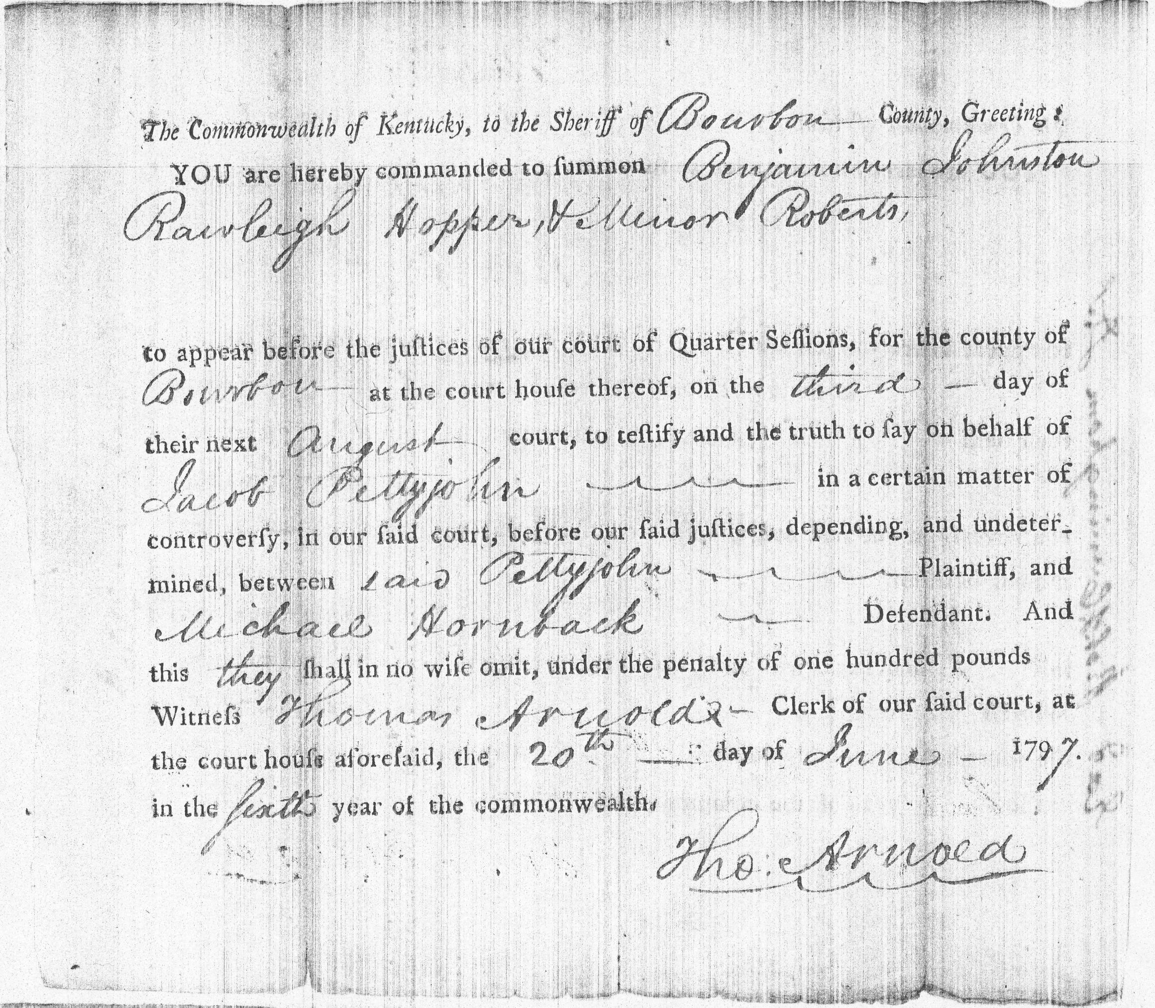 Pettyjohn Hornback Case Bourbon Co. (loose case papers from frankfort, KY.)