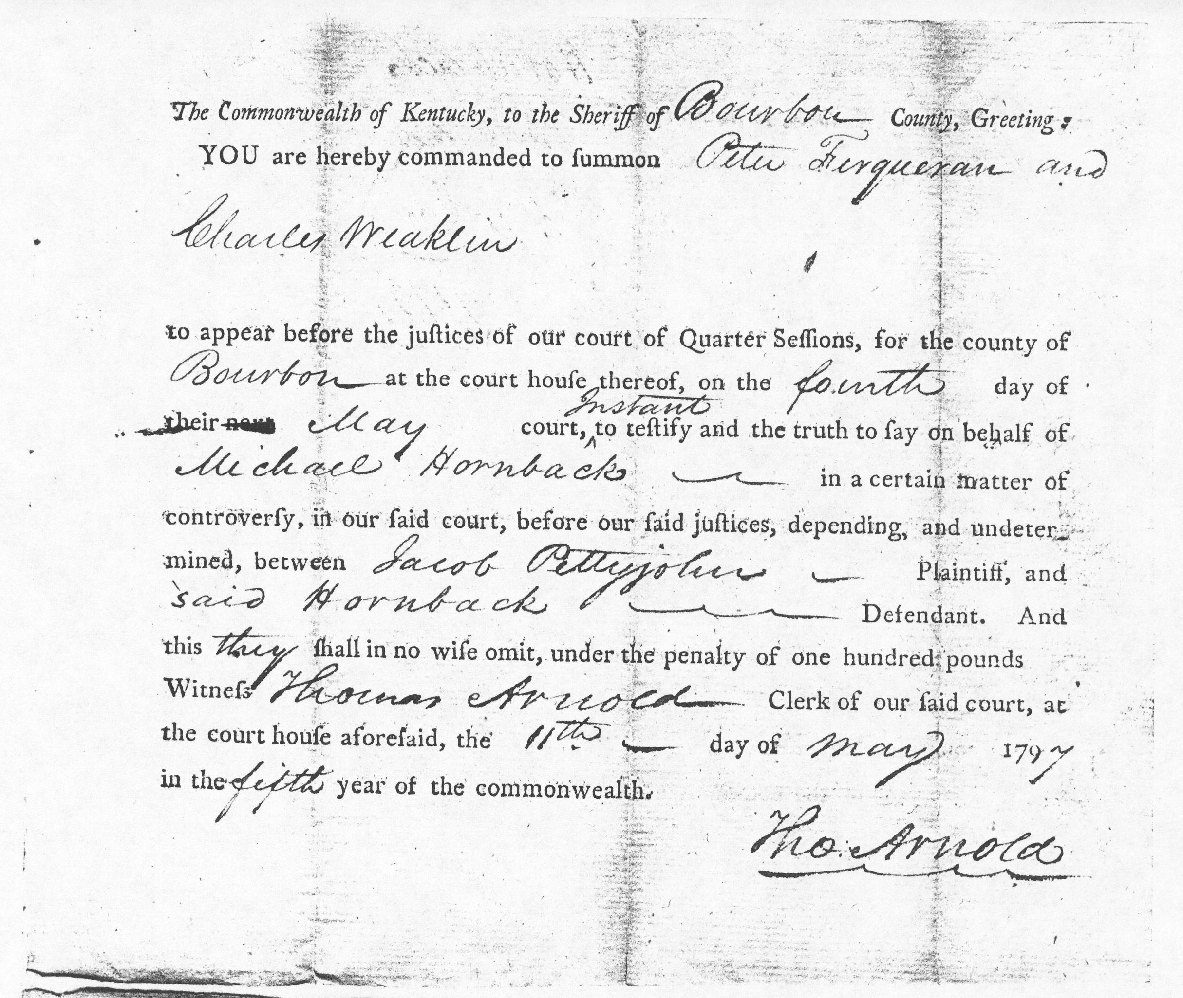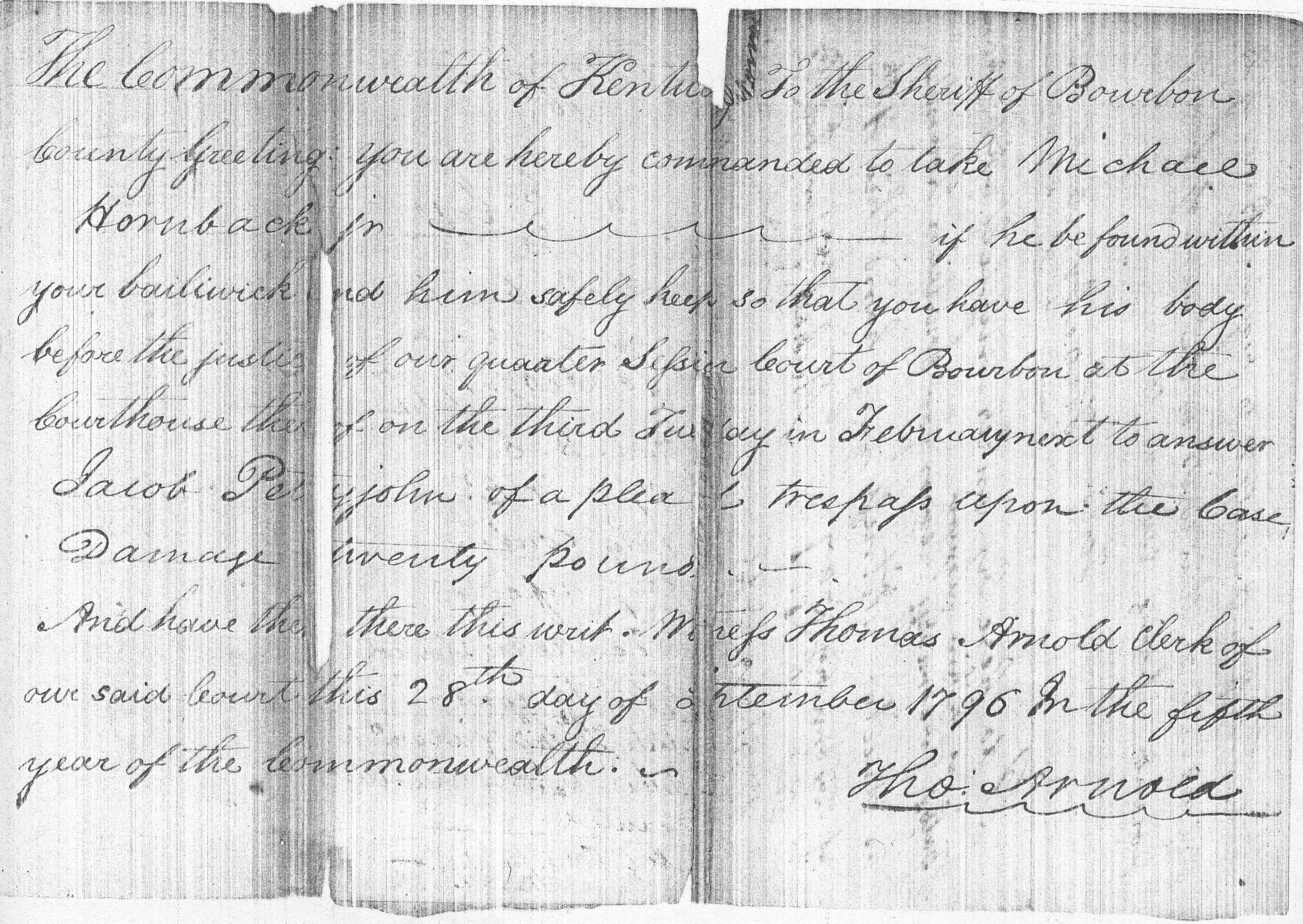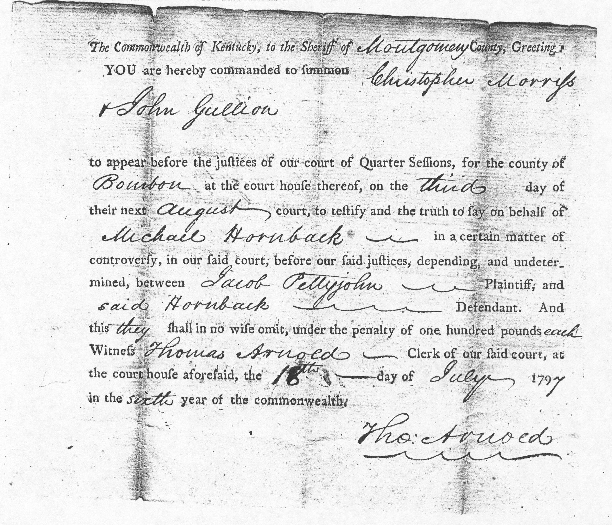 Commonwealth of Kentucky, Bourbon County, to wit: