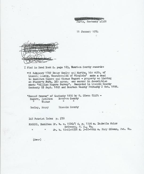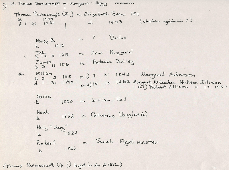 Note: This is one of the more difficult families I have researched. The records are scanty, and it is easy to draw faulty inferences. I wish is to acknowledge that some of the above material is drawn from �The Schooler Family� by Genalee Schooler, and found in the Kentucky Historical Society. Thanks also to Marilyn Craig and the late L.V. Hagan, Jr.
