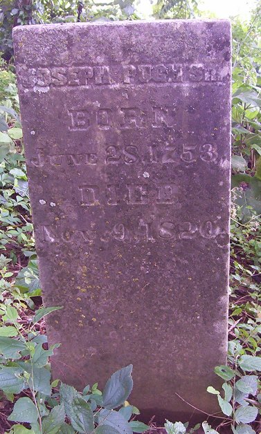 Leut. Joseph Pugh is buried in the Ruddles Mills Precinct on the Cynthiana Pike in the family graveyard of his son-in-law, Samuel Ewalt near Mt Carmel Church. A white marble slab set in limestone covers the grave and bears me following inscription Joseph Pugh born June 28, 1753 Died Nov. 9, 1820.