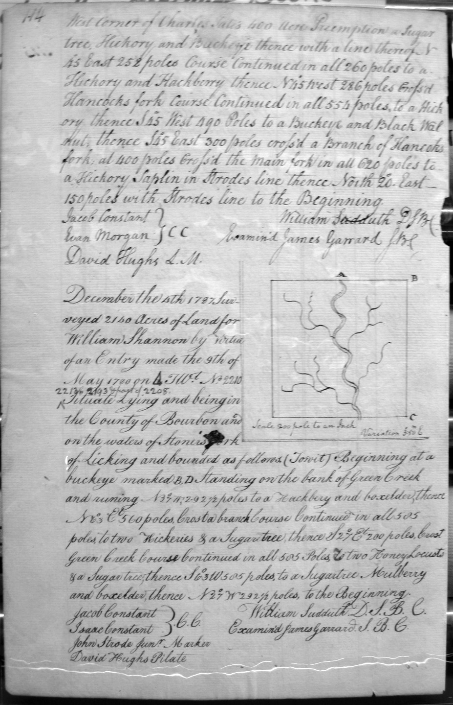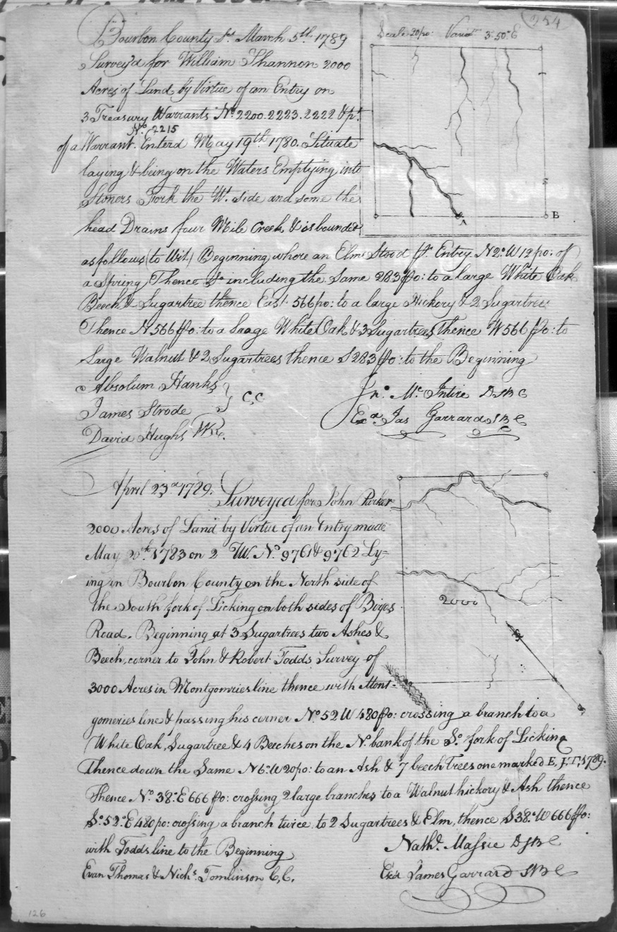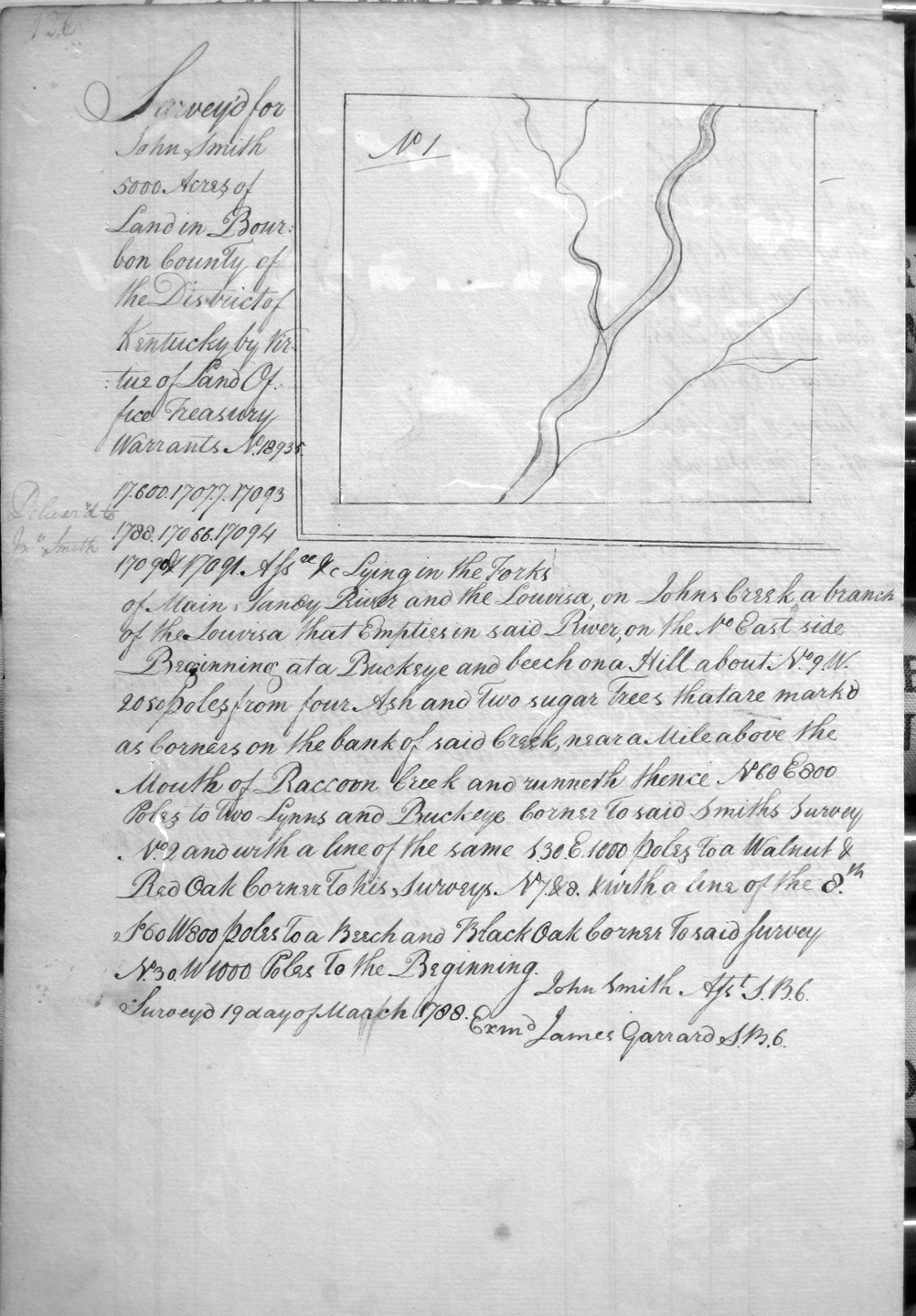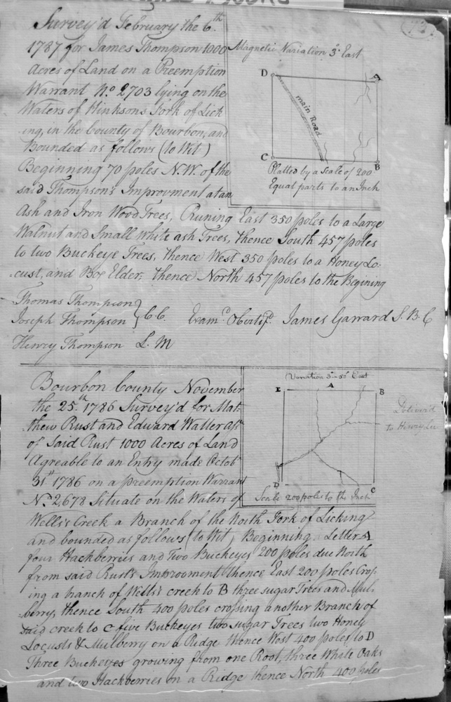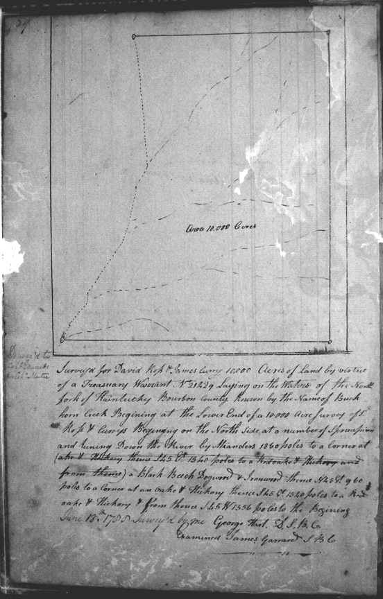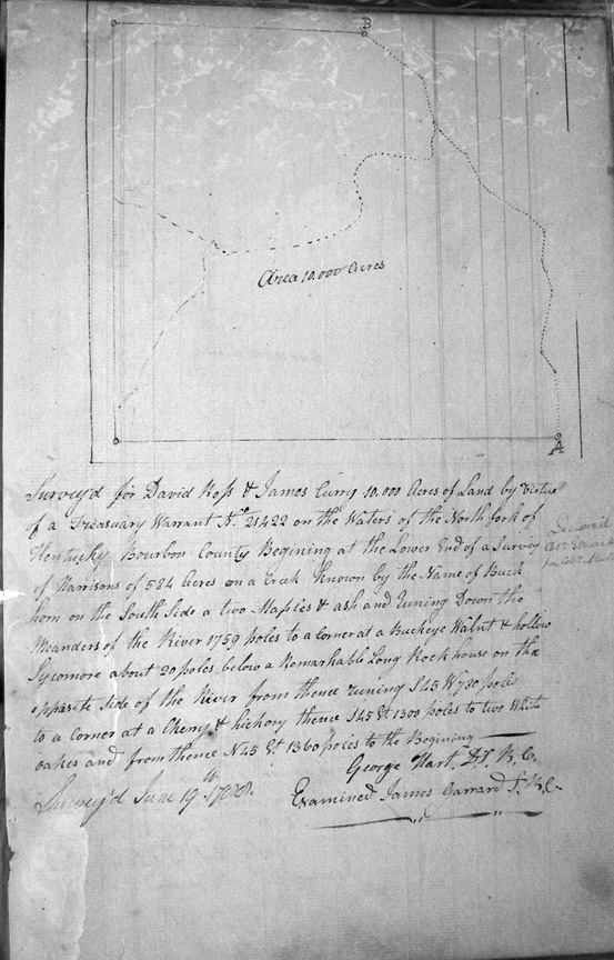 On the Headwaters on the North fork of Licking, bounded by a 10,000 acre survey of Thomas Poindexter, and crossing two small branches.
