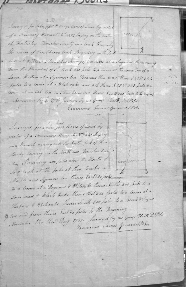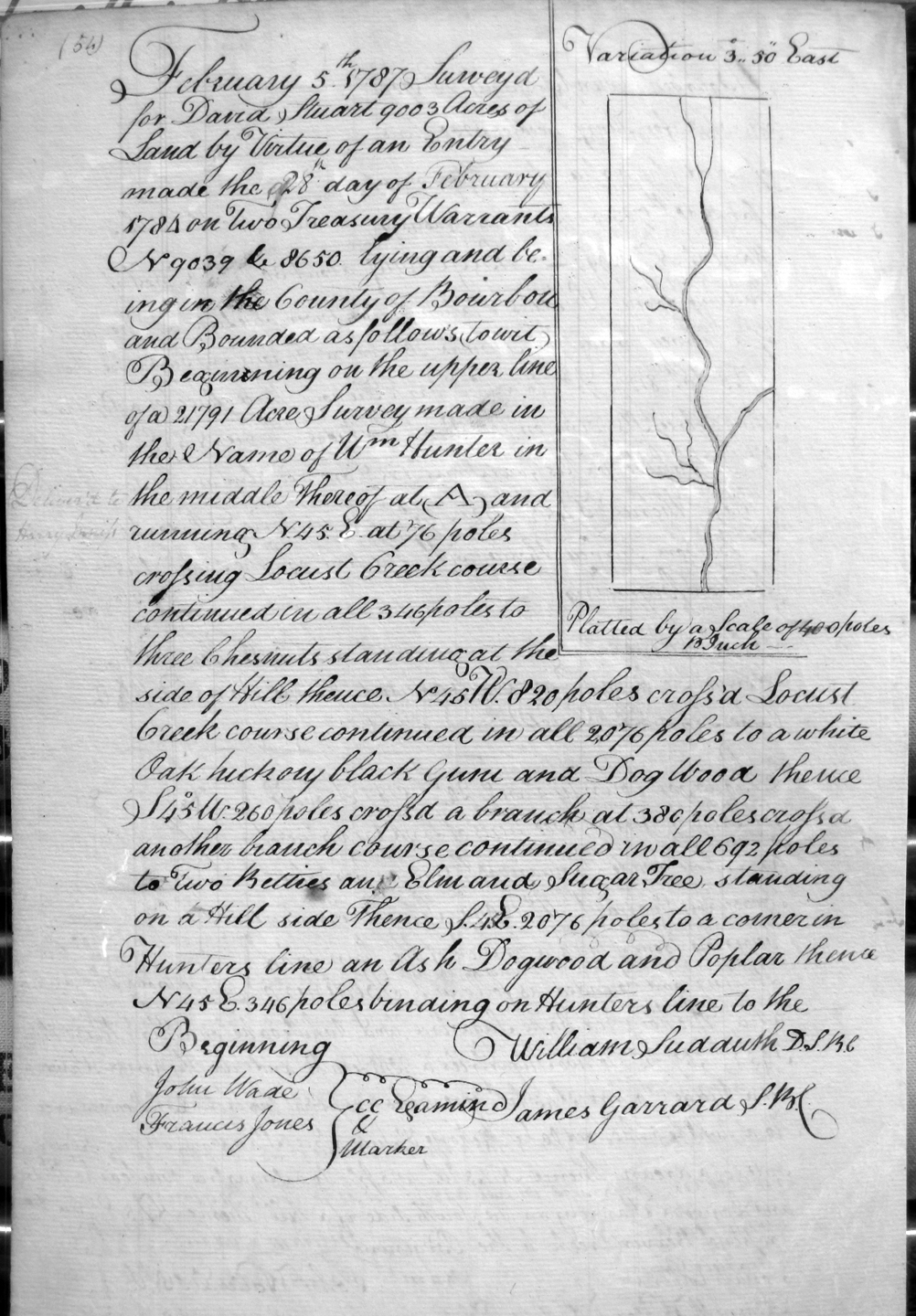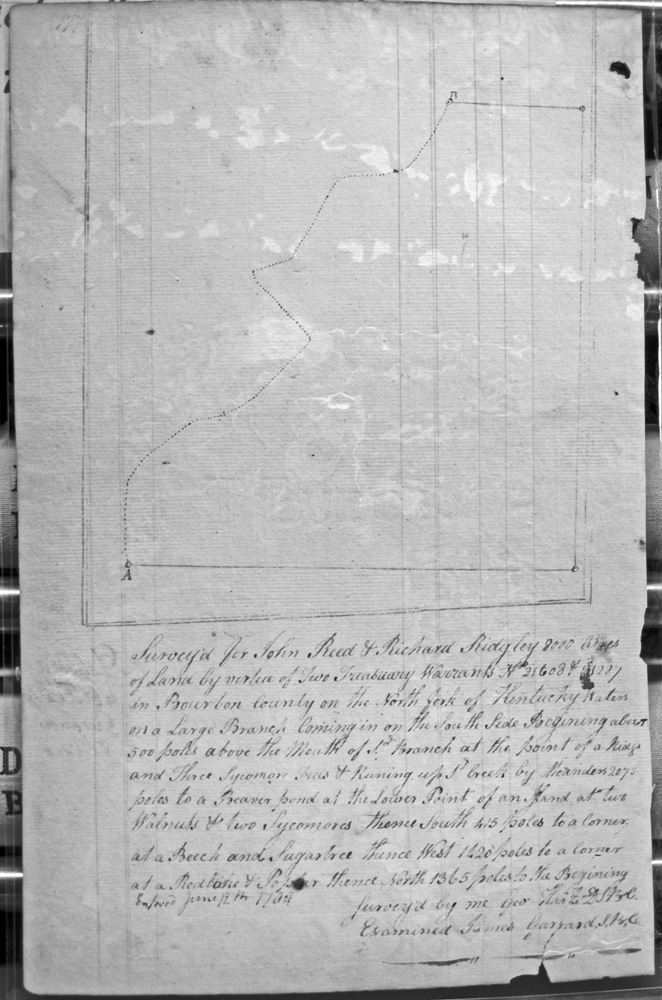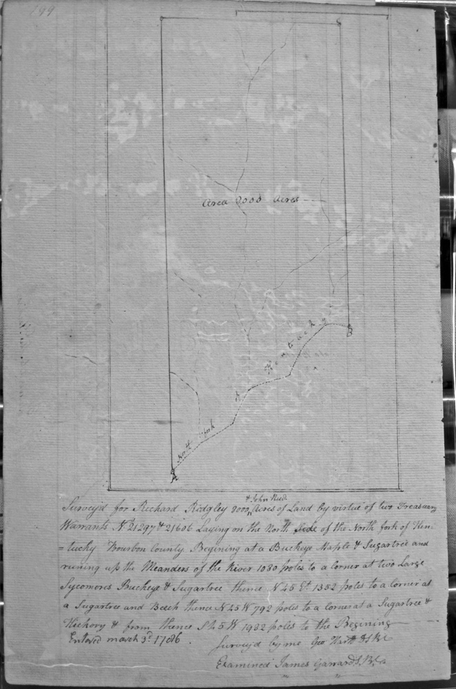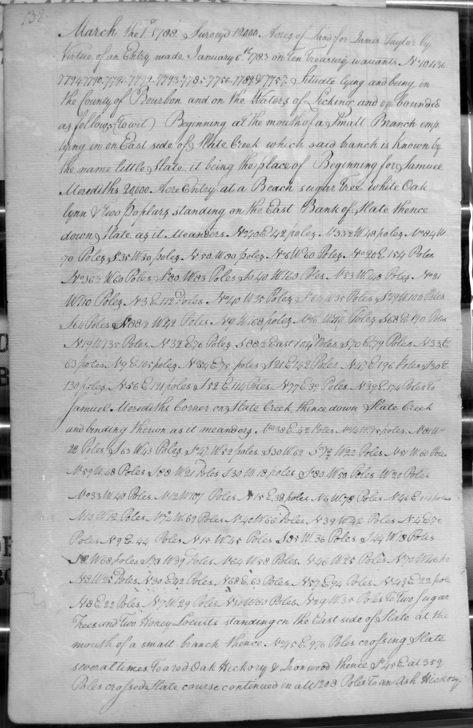 On the Headwaters on the North fork of Licking, bounded by a 10,000 acre survey of Thomas Poindexter, and crossing two small branches.