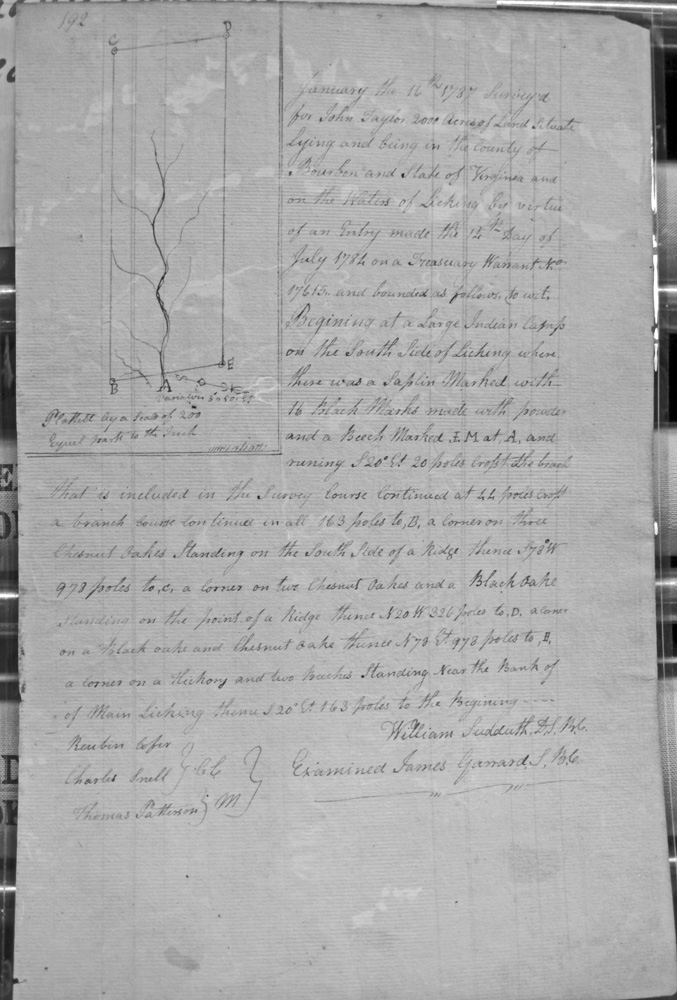 On the waters of Bigg Sandy on the lines of Cornelius Ruddell's survey and Franklin