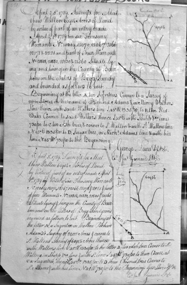 On the waters of Bigg Sandy, on the lines of Richard Adams' 20,000 acre survey, sd. Walton's 609 1/4 acre survey, and Shipp's line.