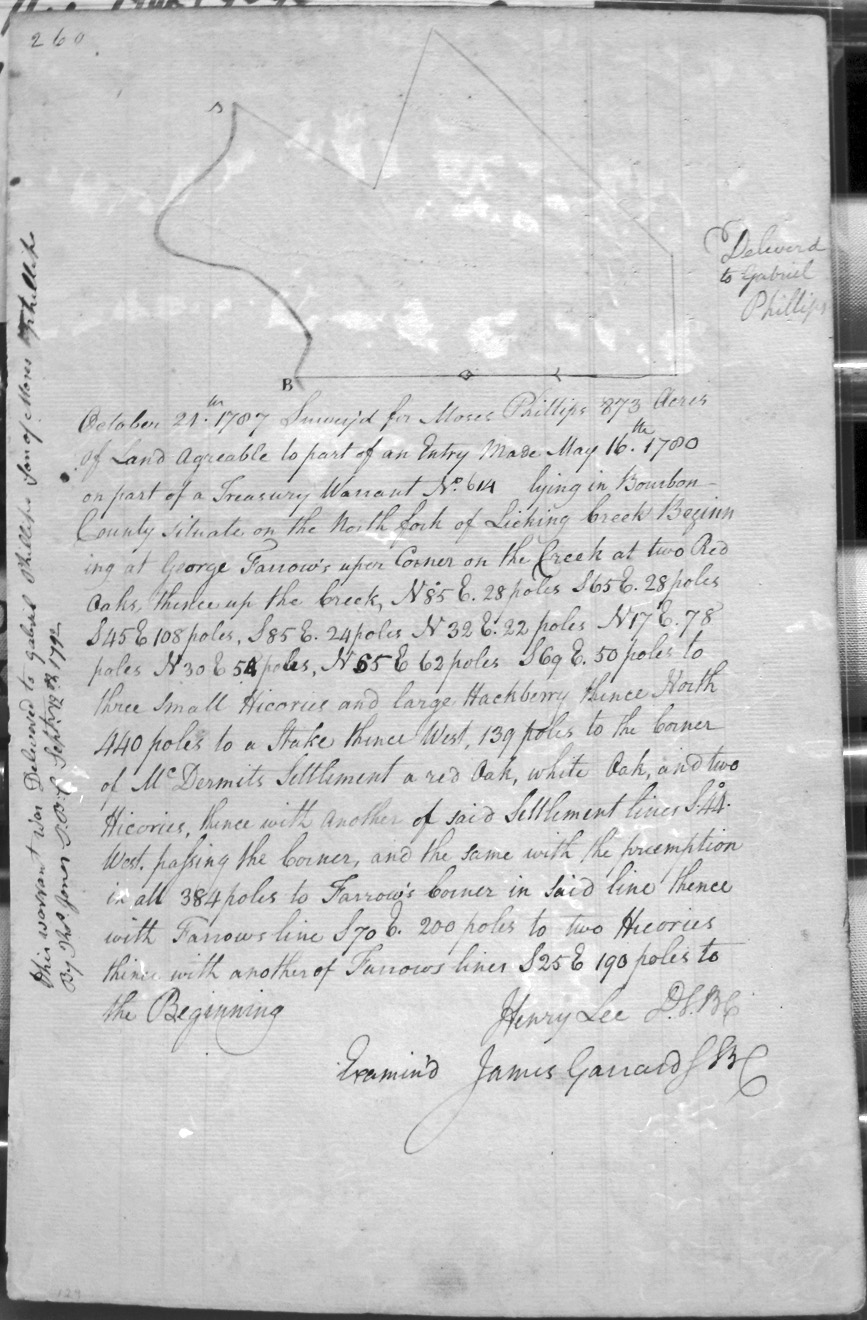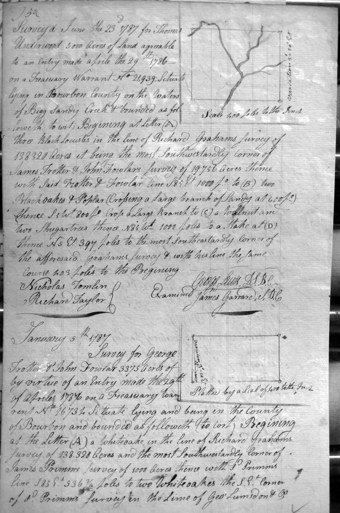 On the North side of the South Fork of Licking on both sides of Brigs (?) Road, bounded by a 3,000 acre survey of John and Robert Todd in Montgomeries (Montgomery's) line, then with Montgomeries line and passing his corner, and with Todd's line to the beginning.