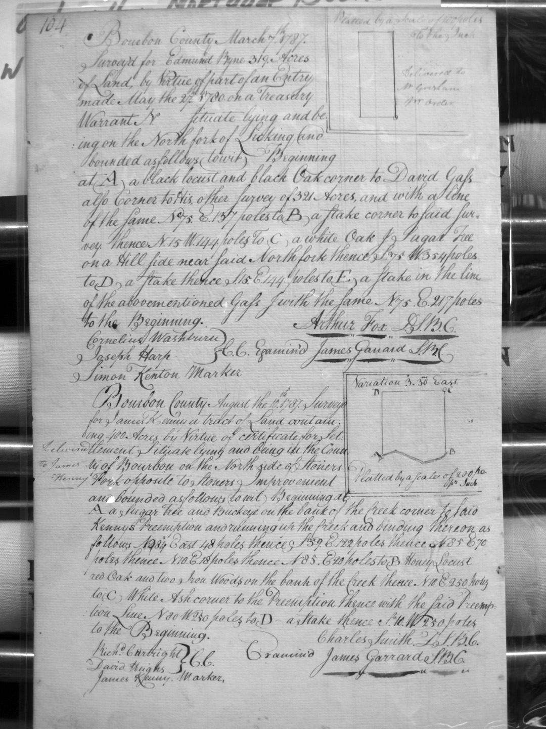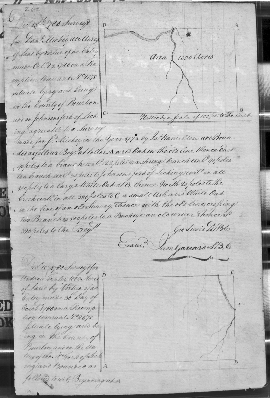 On Johnsons fork of Licking agreeable to a survey made for said Mickey in 1773 by Jas. Hamilton.