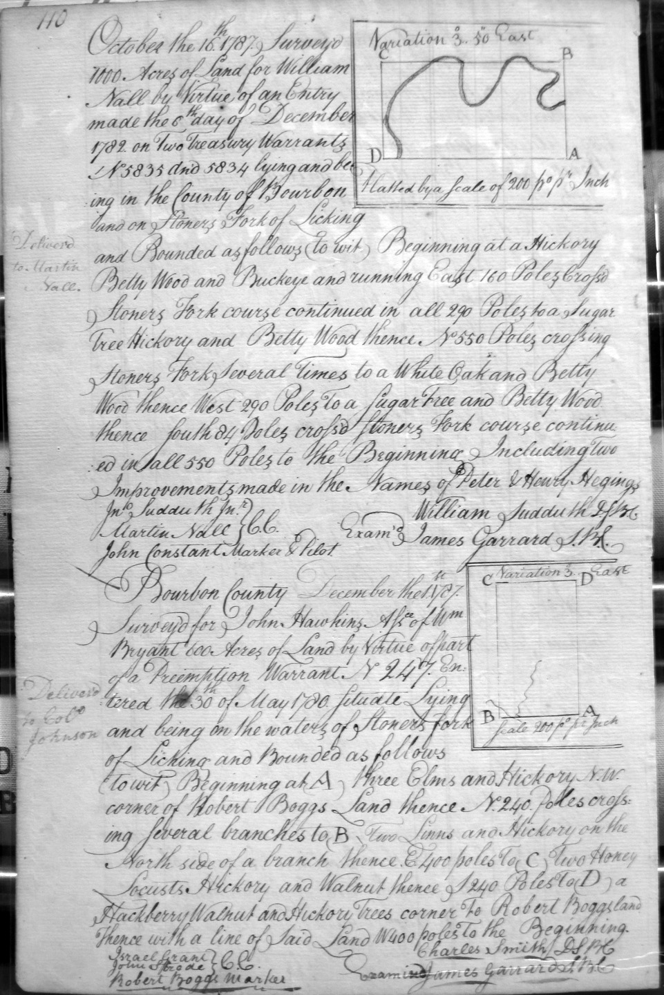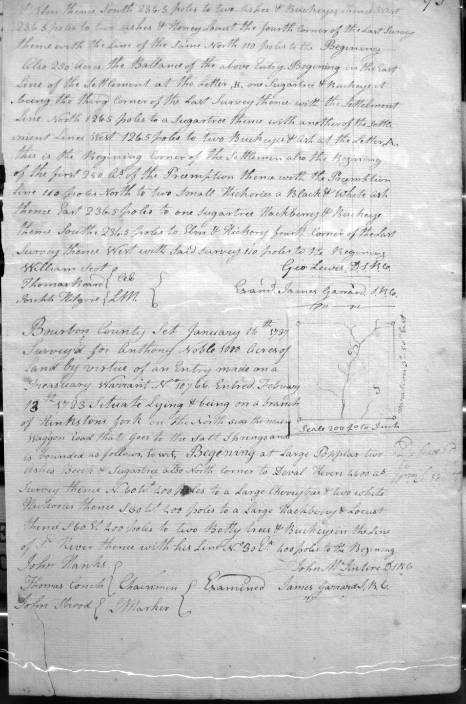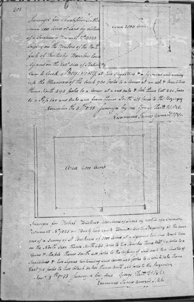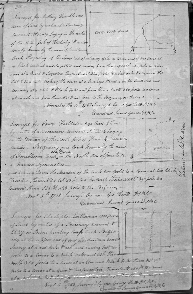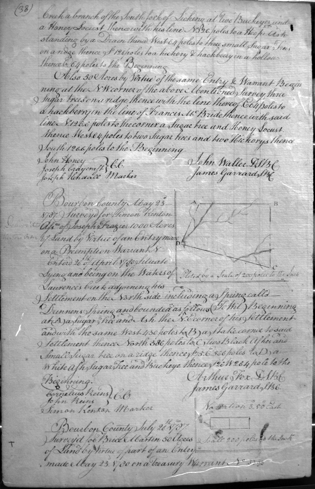On Clement's fork of Hinkston, on a small deer lick on the South side of the creek, on the lines of William Tomkins and Joseph Procter's 2,000 acres.