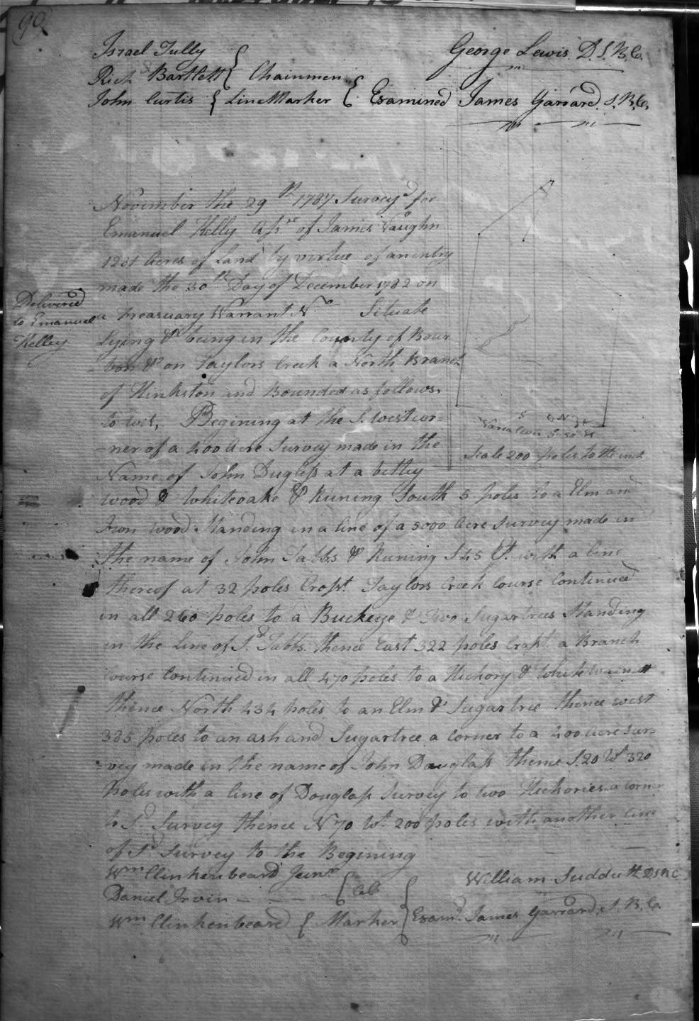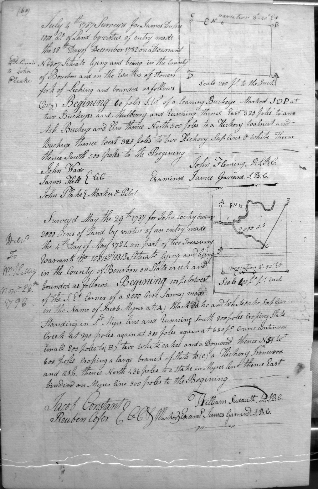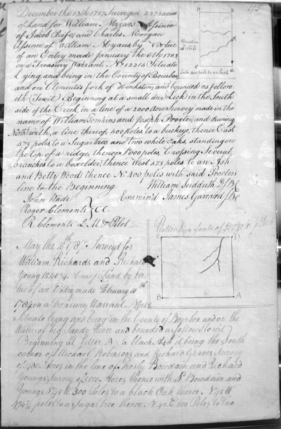 On Clement's fork of Hinkston, on a small deer lick on the South side of the creek, on the lines of William Tomkins and Joseph Procter's 2,000 acres.