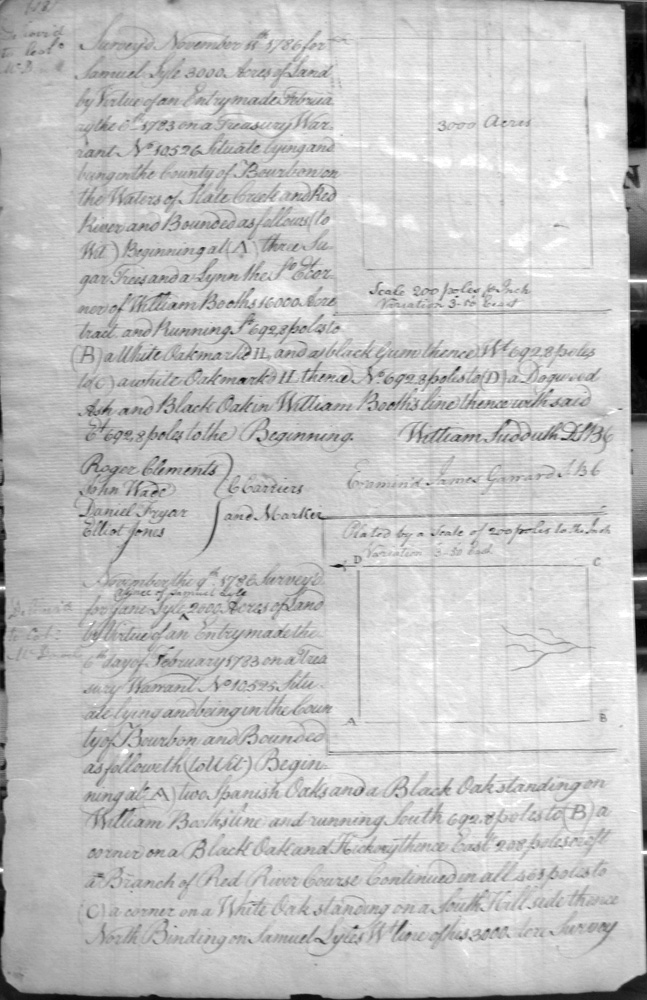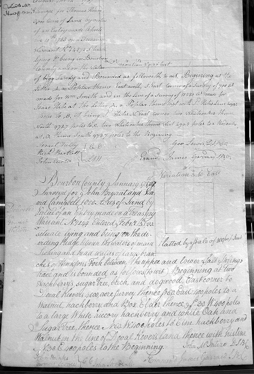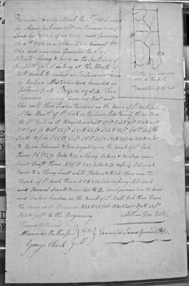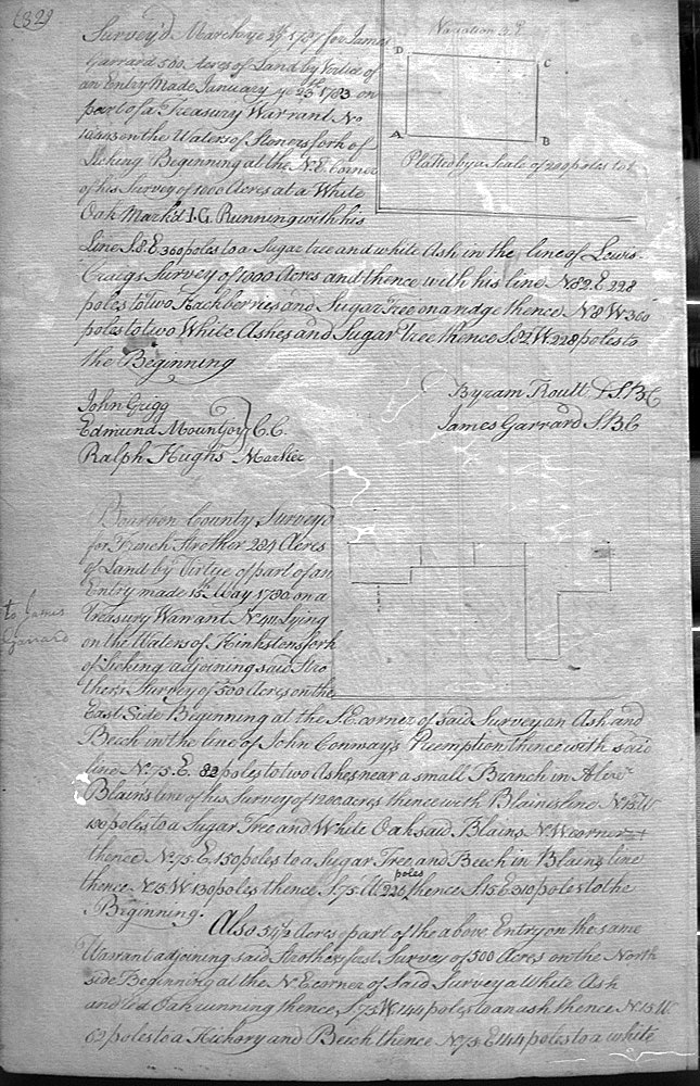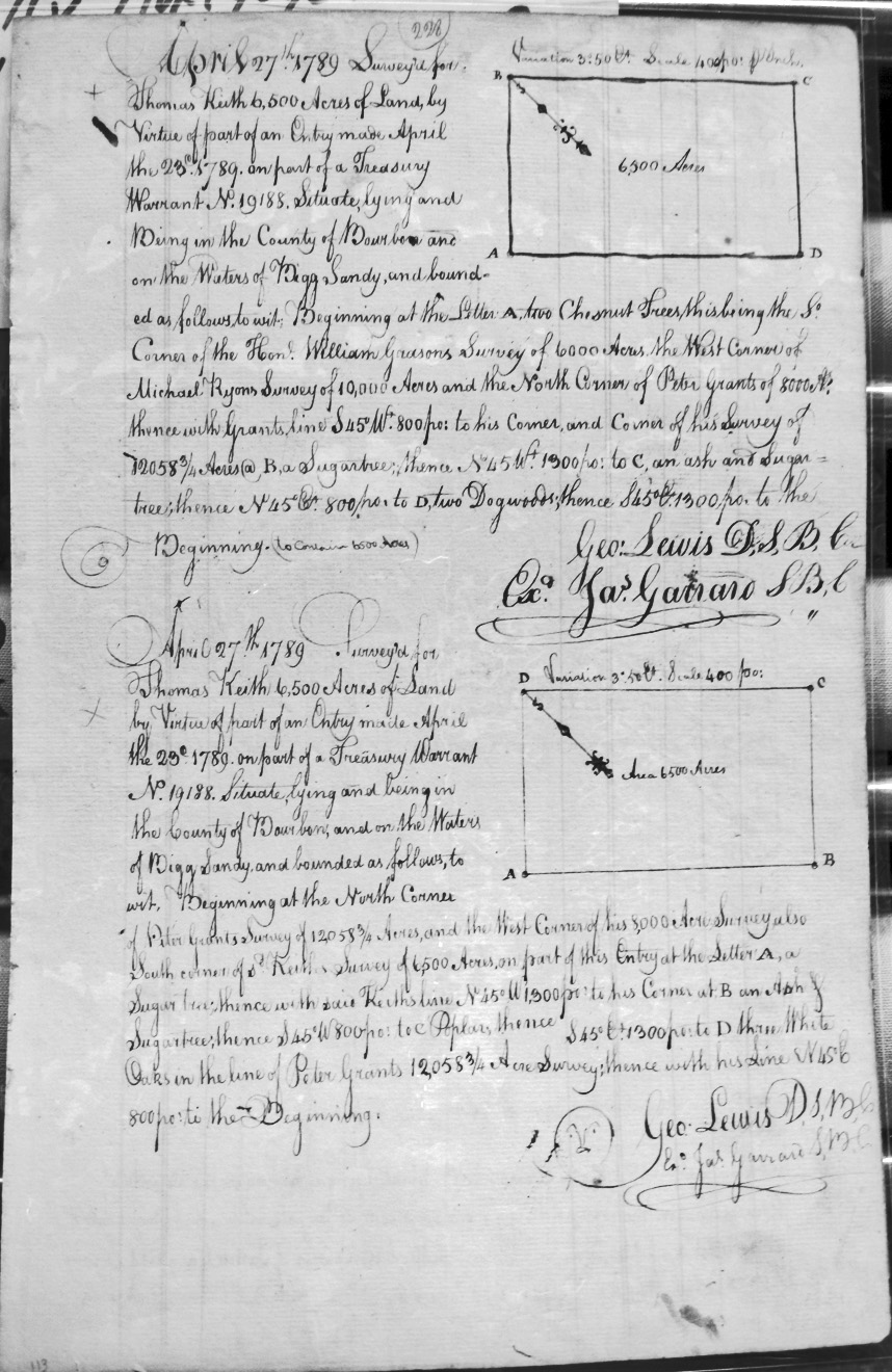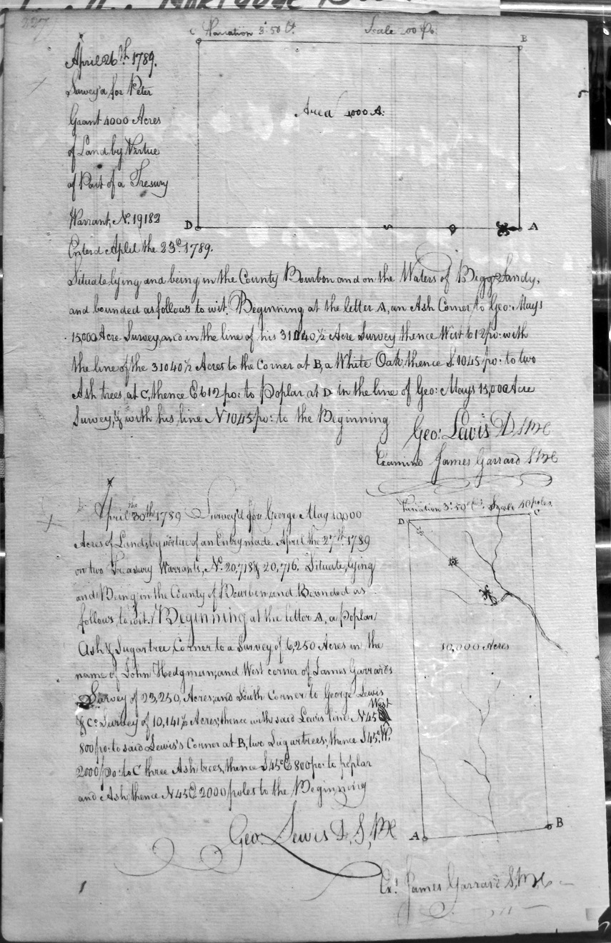 On the waters of Bigg Sandy, on the lines of Michael Ryan's 10,000 acre survey on Merry Walker's line and sd. Grant's 12,058 3/4 acre survey.