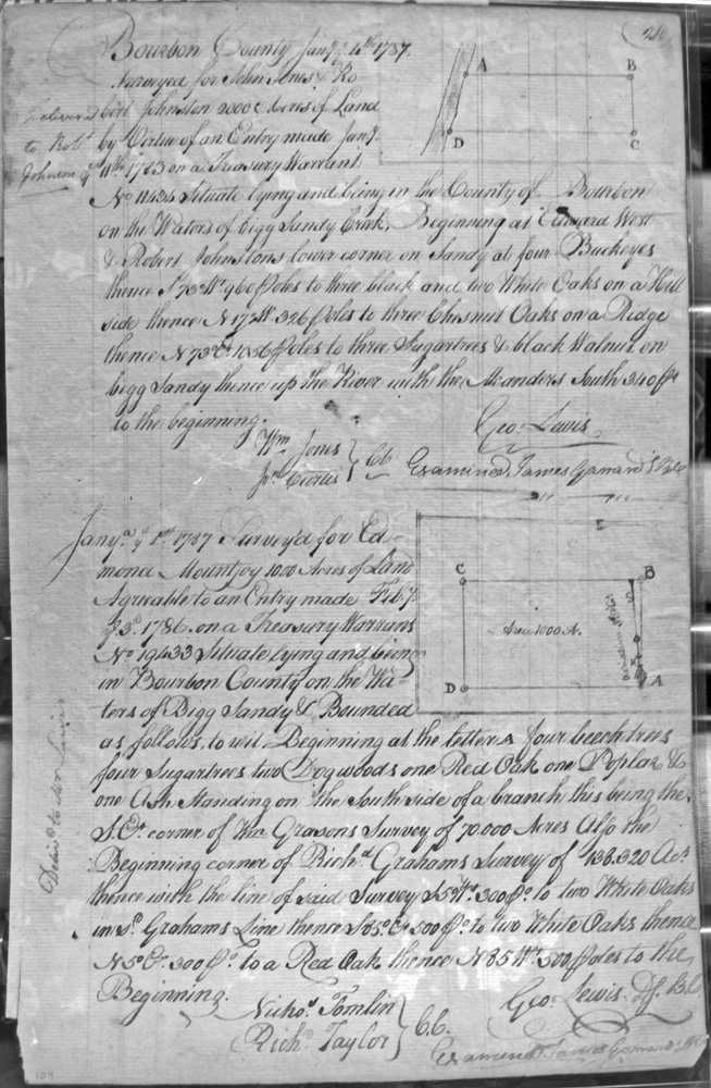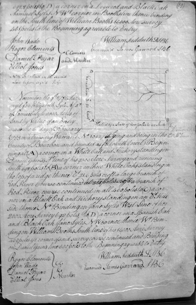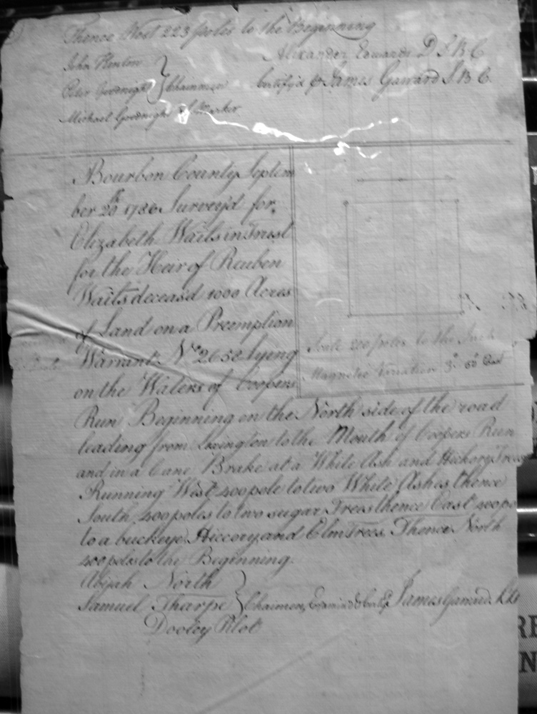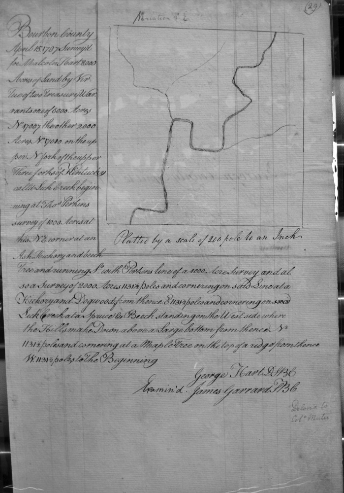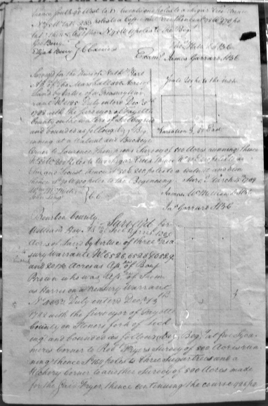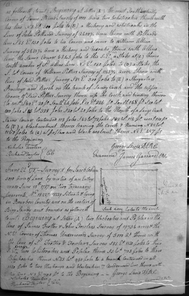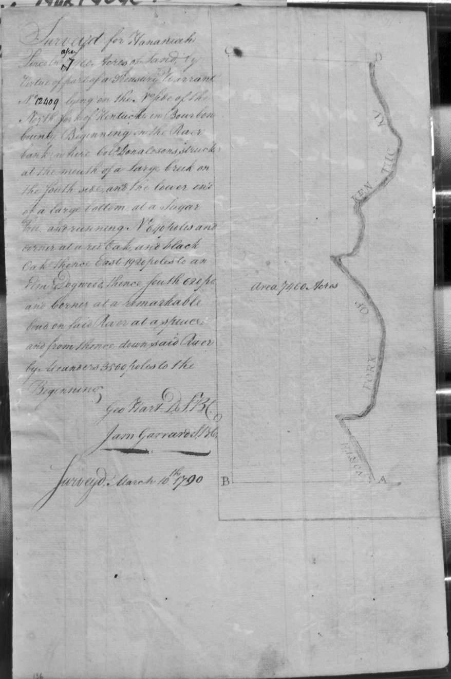 On the waters of Bigg Sandy, on the lines of Michael Ryan's 10,000 acre survey on Merry Walker's line and sd. Grant's 12,058 3/4 acre survey.