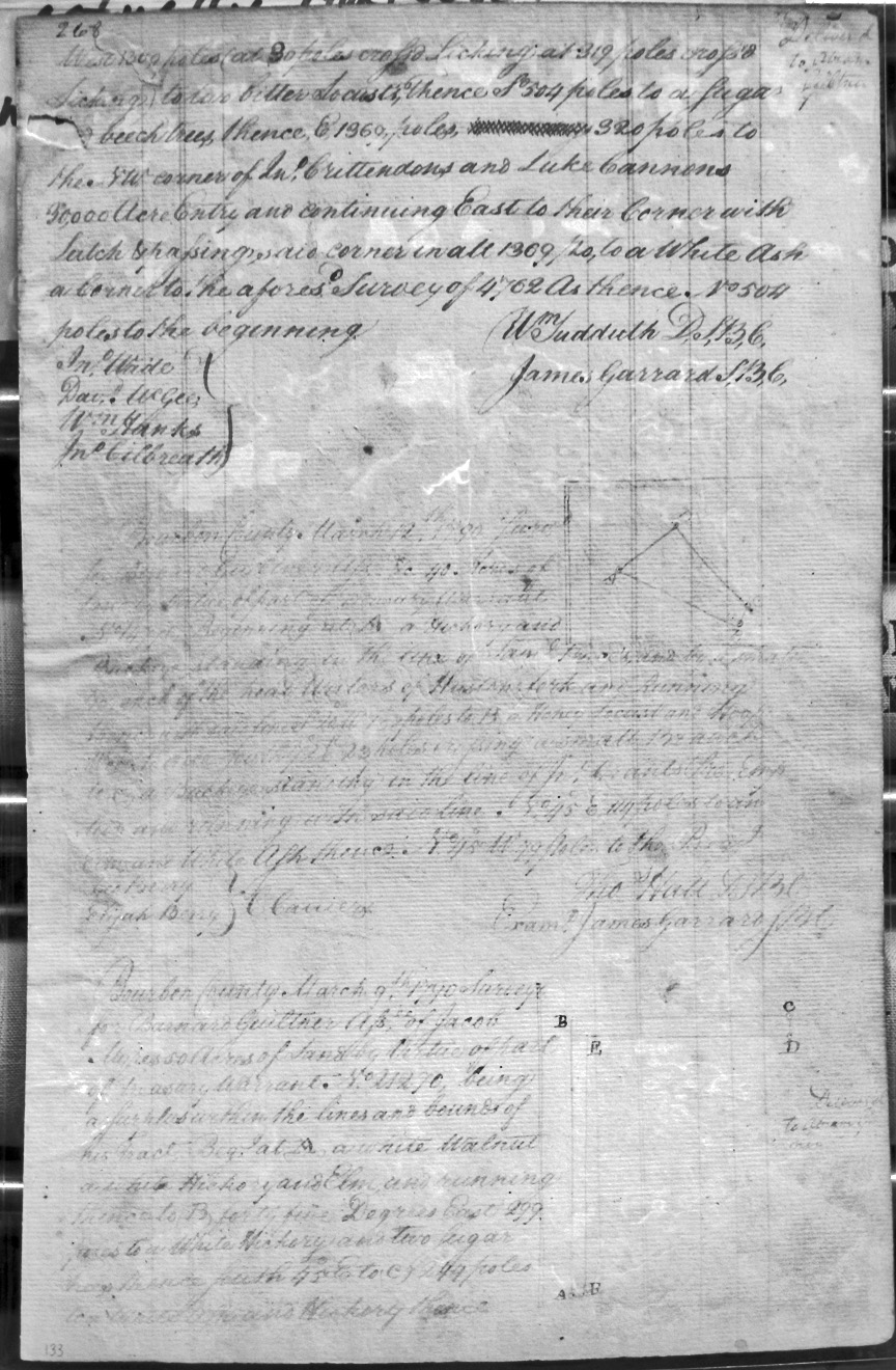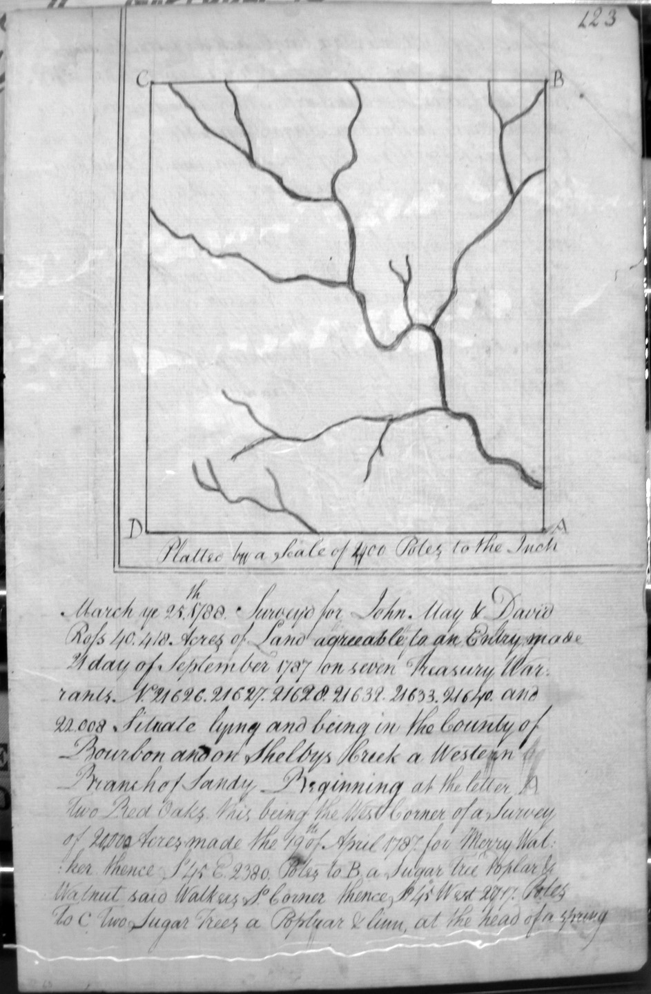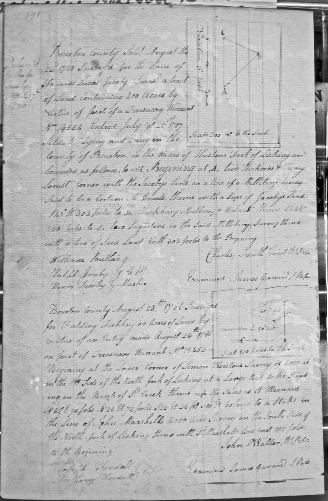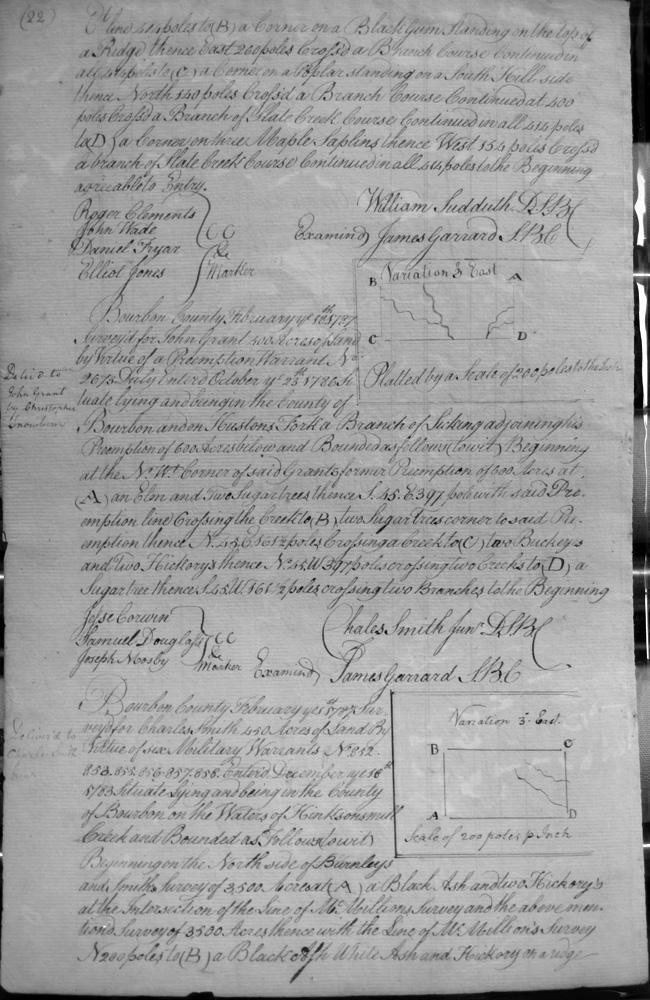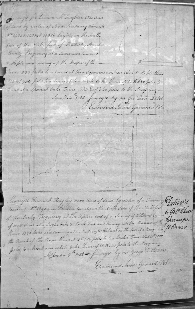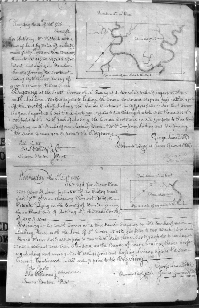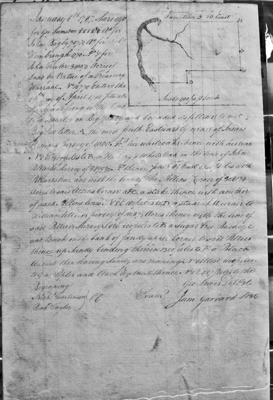 On the waters of Bigg Sandy, on the lines of Michael Ryan's 10,000 acre survey on Merry Walker's line and sd. Grant's 12,058 3/4 acre survey.
