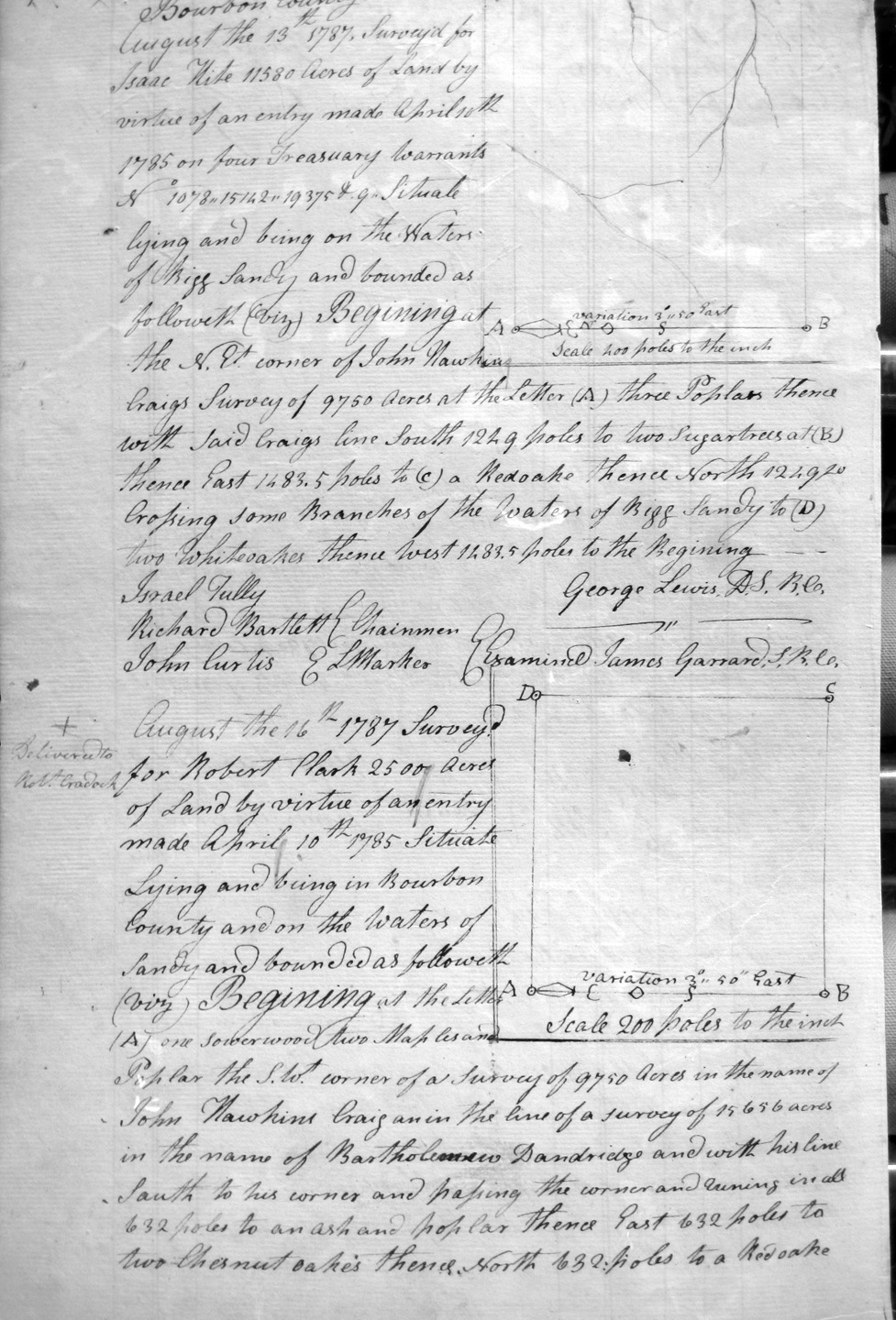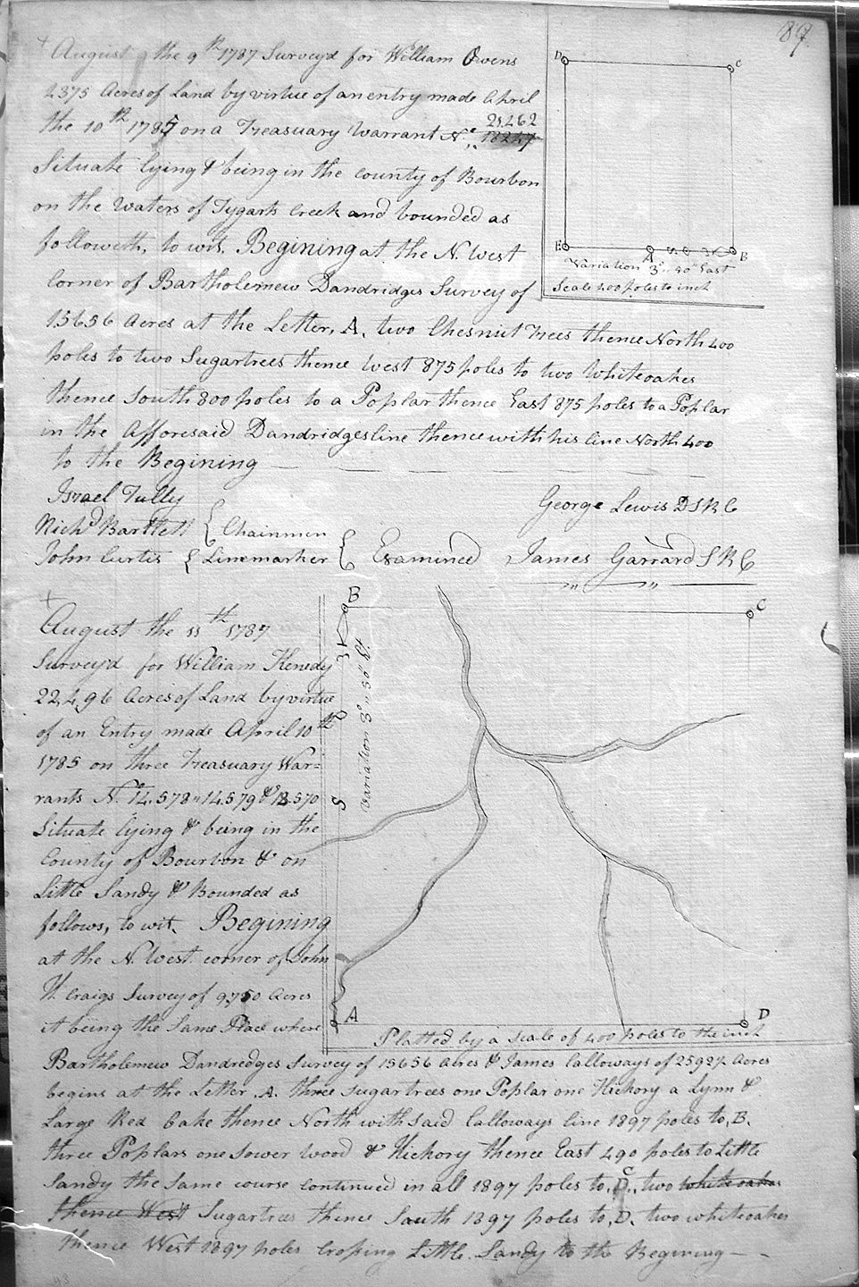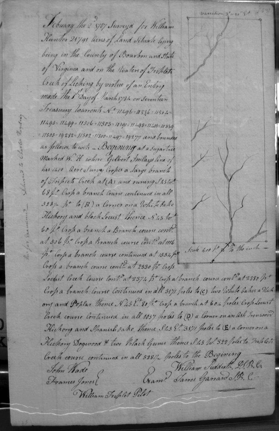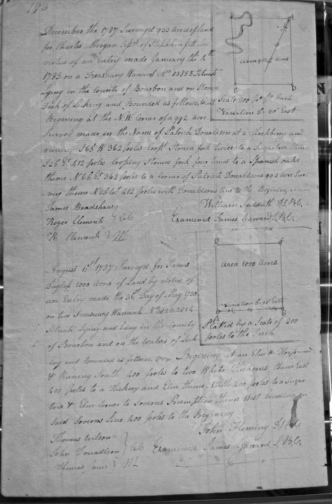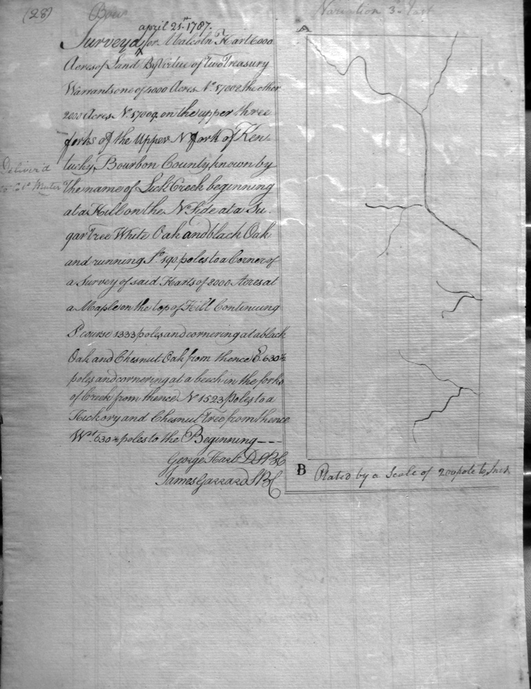 On the waters of Bigg Sandy, on the lines of Michael Ryan's 10,000 acre survey on Merry Walker's line and sd. Grant's 12,058 3/4 acre survey.