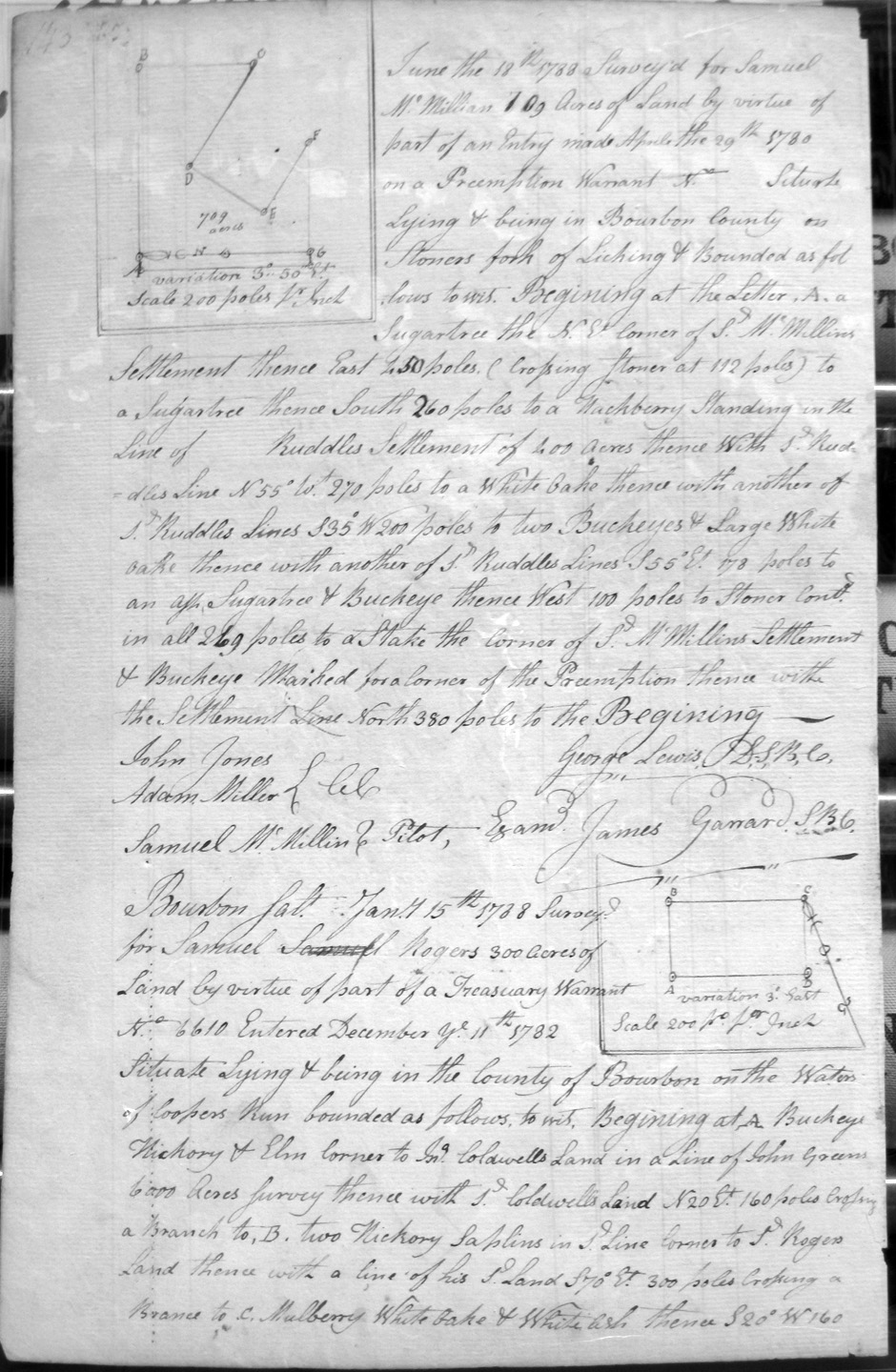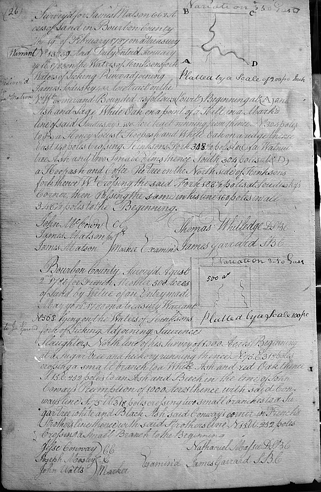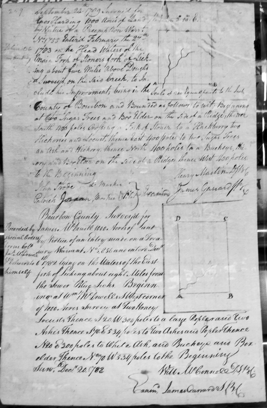 On Stoner's fork of Licking, and on the NE corner and a line of S'l McMillan's Settlement, and on the lines of Ruddle's 400 acre Settlement,