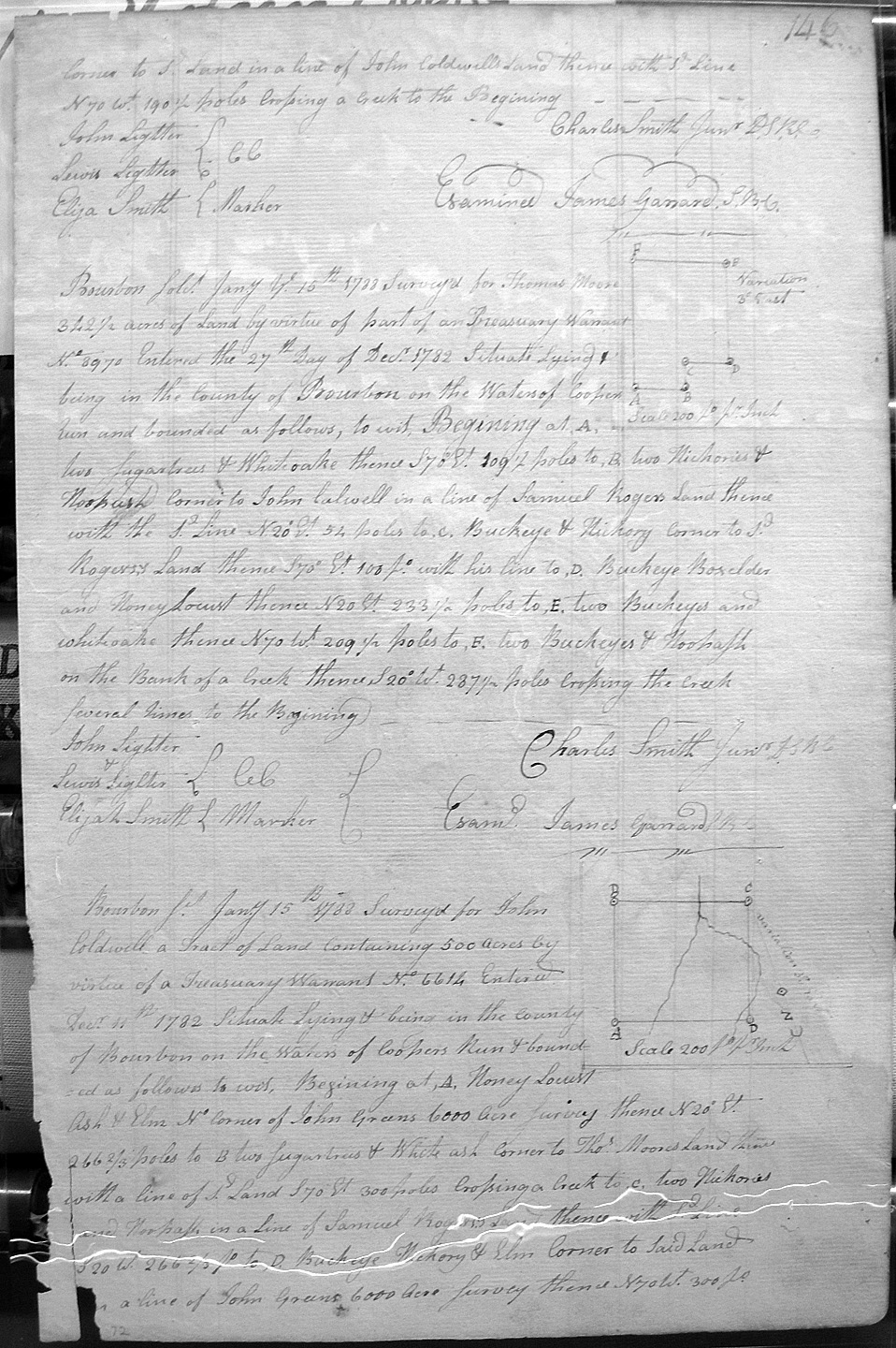 On the waters of Cooper's Run on the North__st corner of John Coldwell's land and S'l Rogers's land.