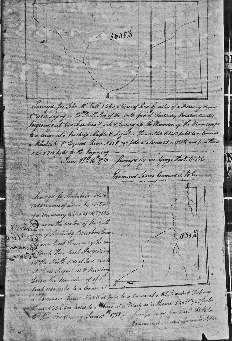 On the Waters of Bigg Sandy and bounded by the NE corner of Sd. Garrard's Survey of 2,958 1/4 acres as part of this entry.