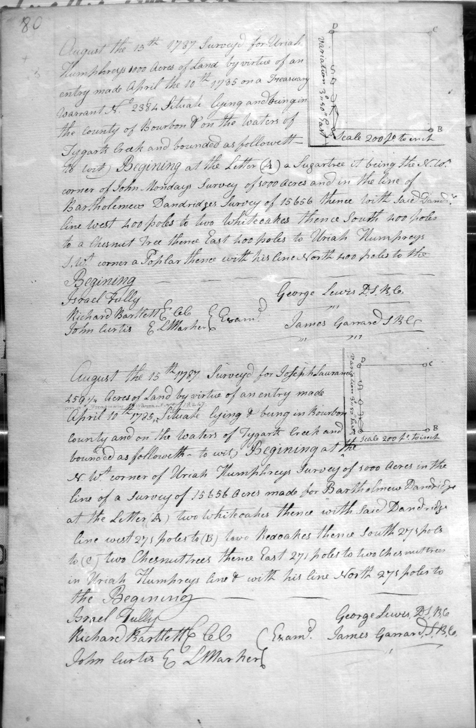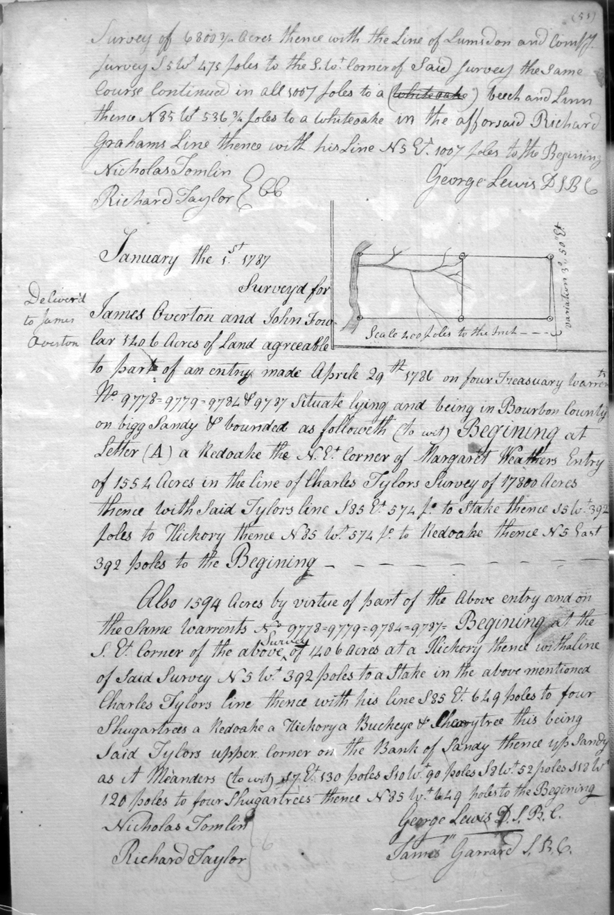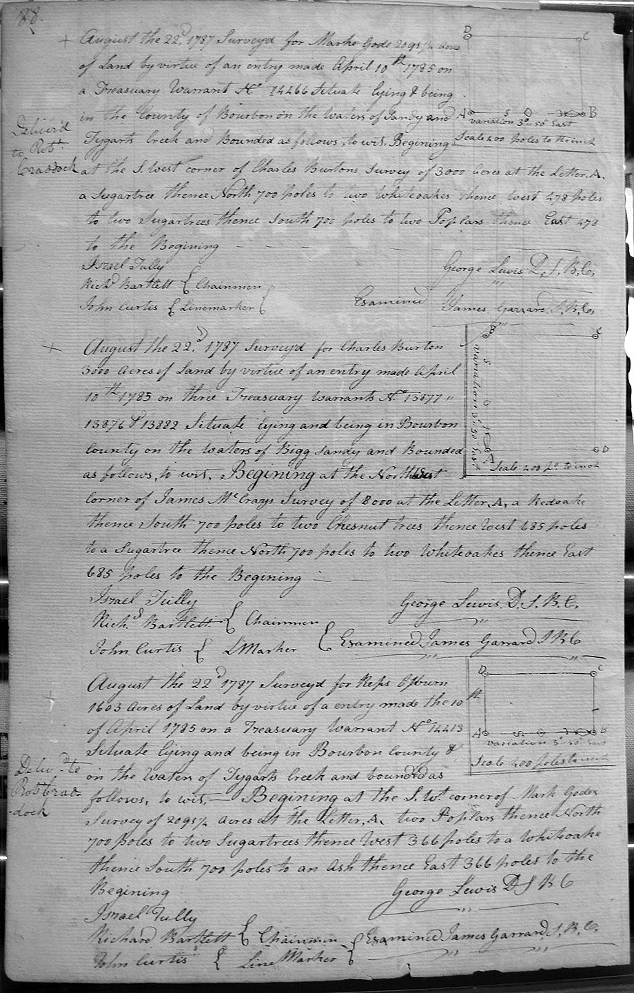 On the waters of Sandy and Tygart's creek, and on the SW corner of Charles Burton's 3,000 acre survey