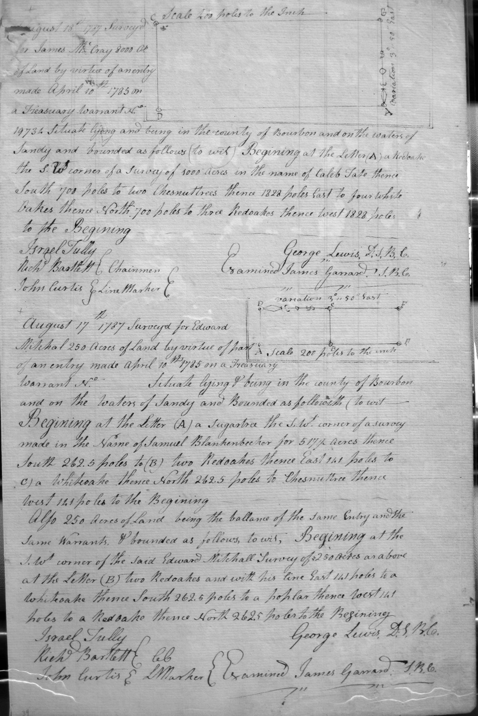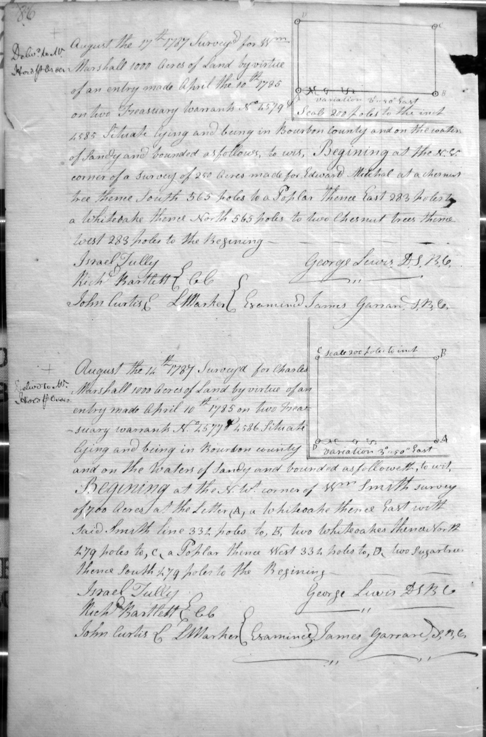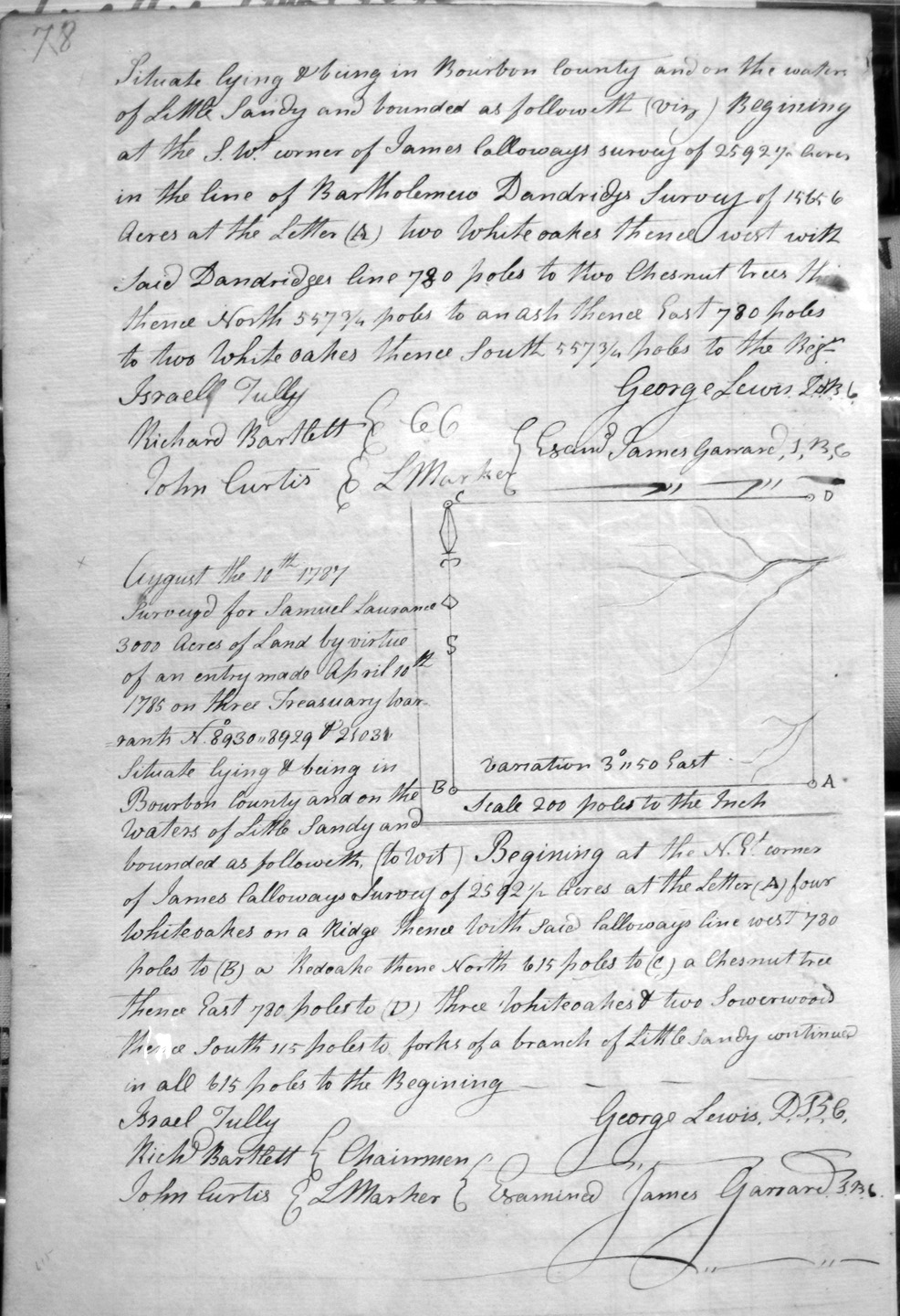 On the waters of Sandy and Tygart's creek, and on the SW corner of Charles Burton's 3,000 acre survey
