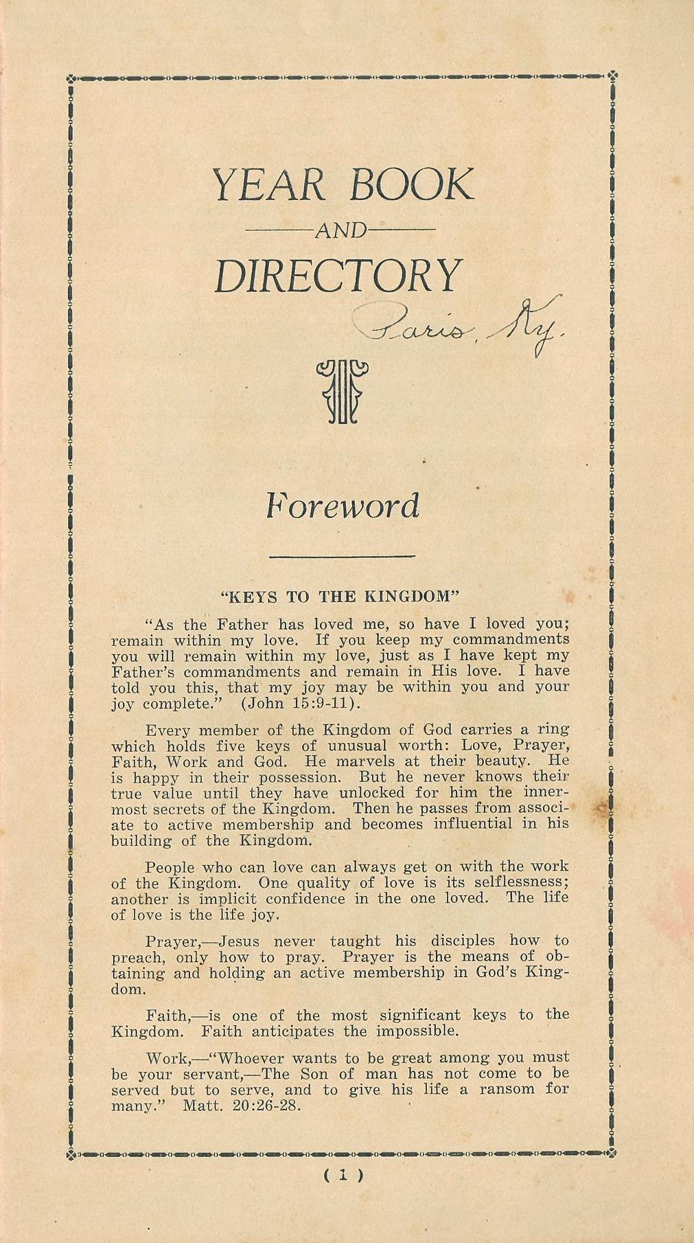 2nd Methodist Episcopal Church 1929 Directory-Page 1
