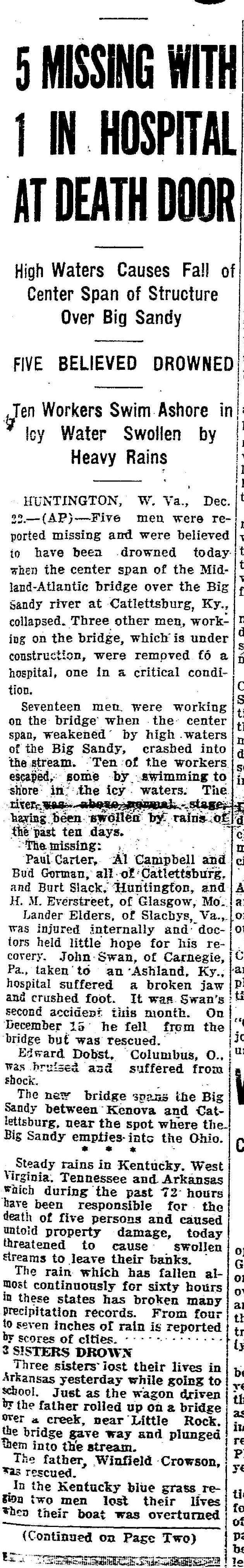 Zanesville OH - December 22, 1926