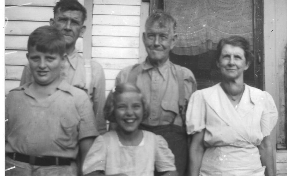 From left: John and Ruth Robinette c/o Lawson and Lucille Crane Robinette with their Uncles and Aunt. Frm left: Chris, John, and Martha Crane.