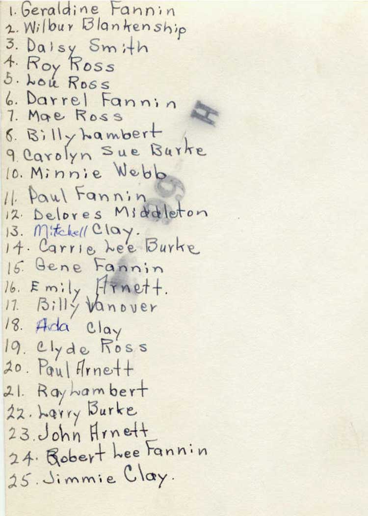 List of names on back of Photo.