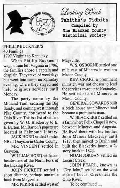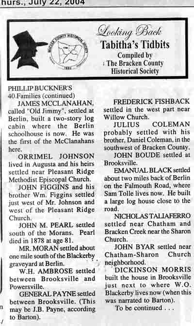 | July 29, 2004 | Phillip Buckner's 40 Families 1797 Virginia to Kentucky (Part 3) |