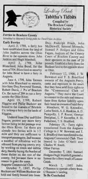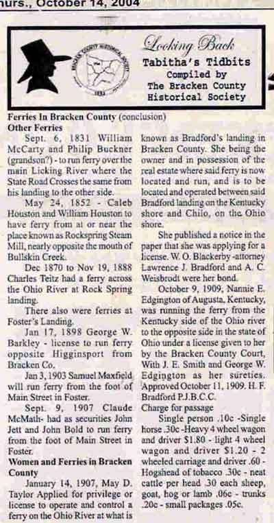 | October 14, 2004 | Ferries in Bracken County Other Ferries (Conclusion) |